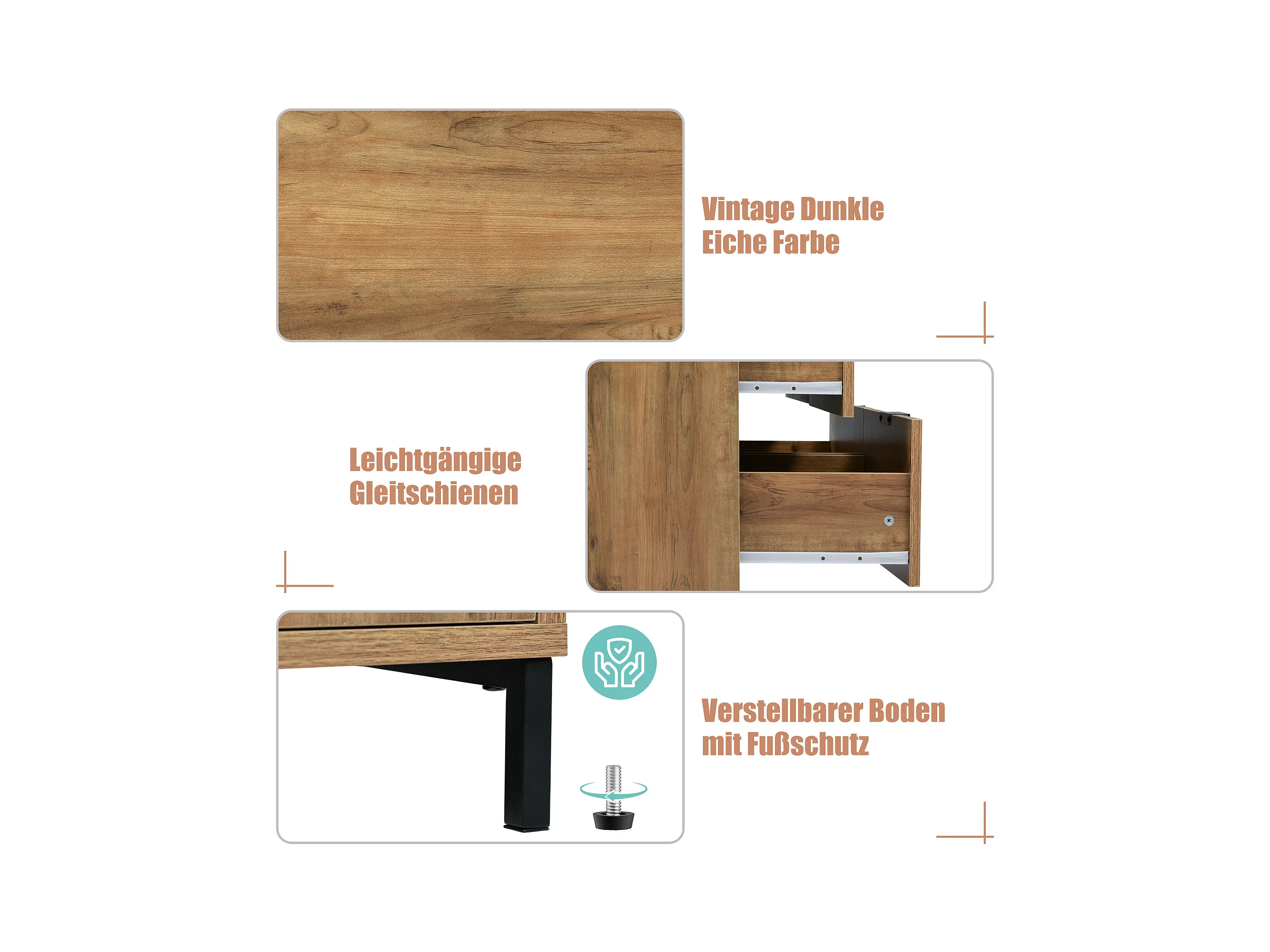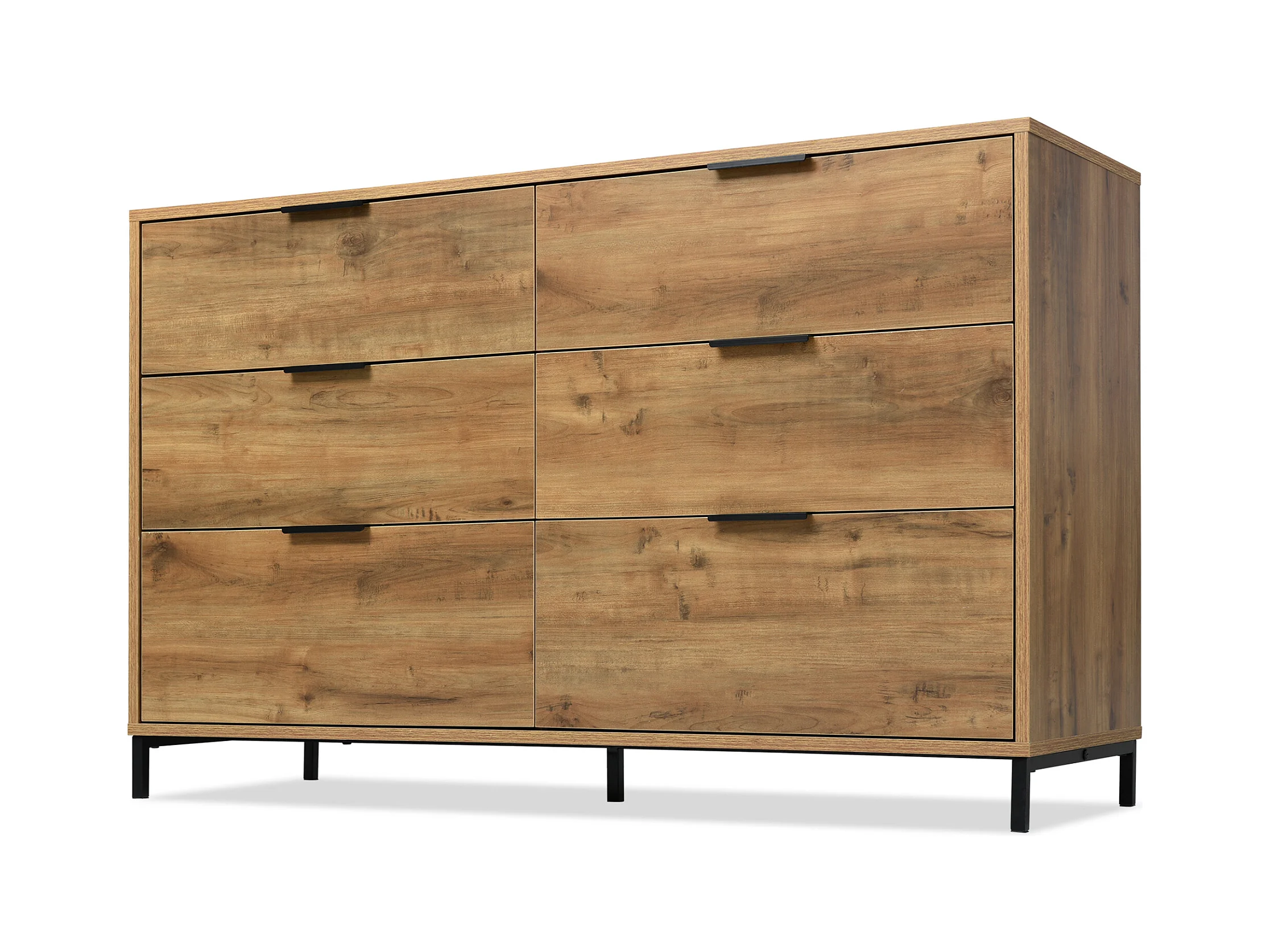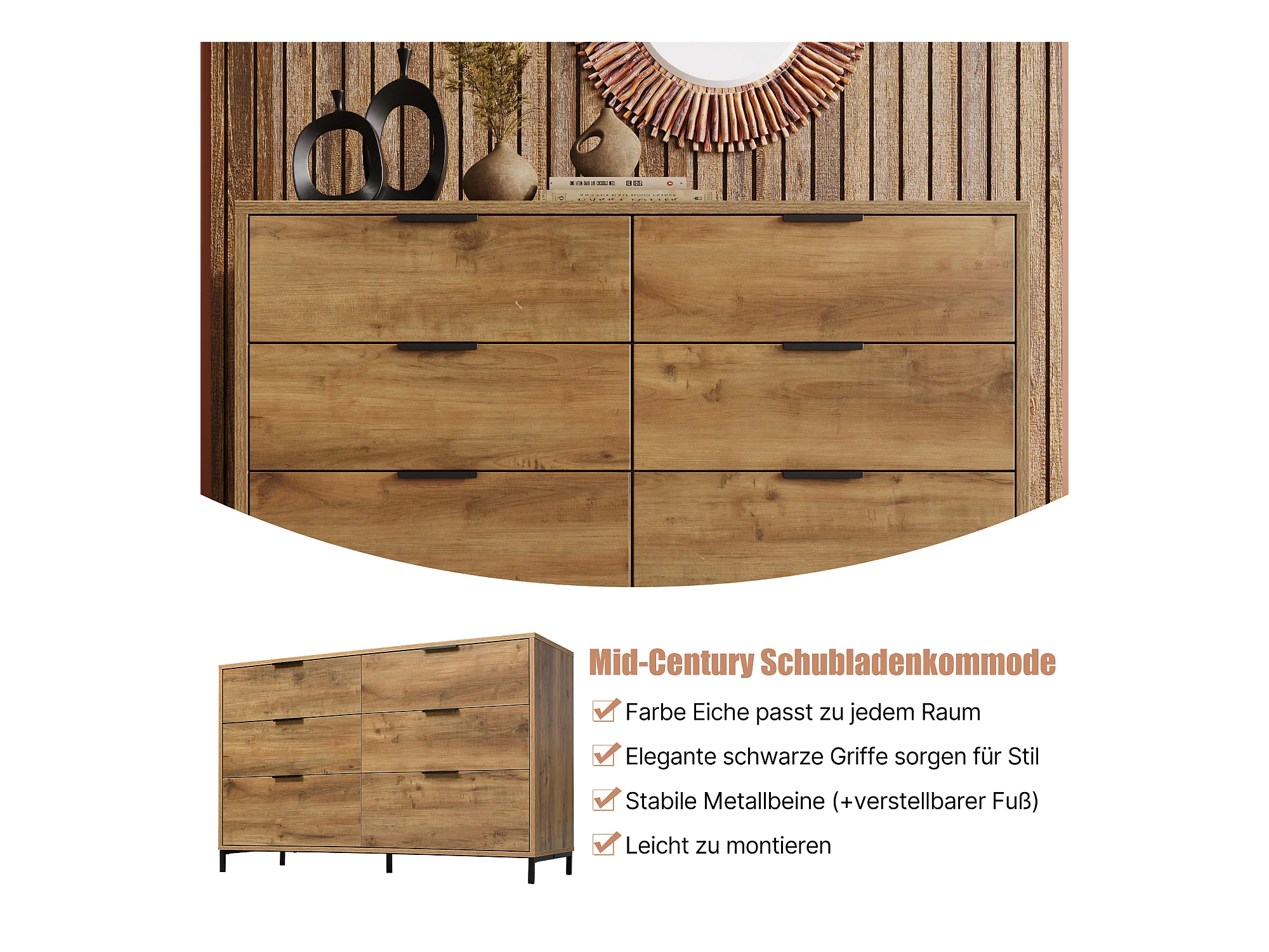 Commode, buffet avec 6 tiroirs, 120 x 40 x 76 cm, Panneaux de particules + métal, Chêne foncé