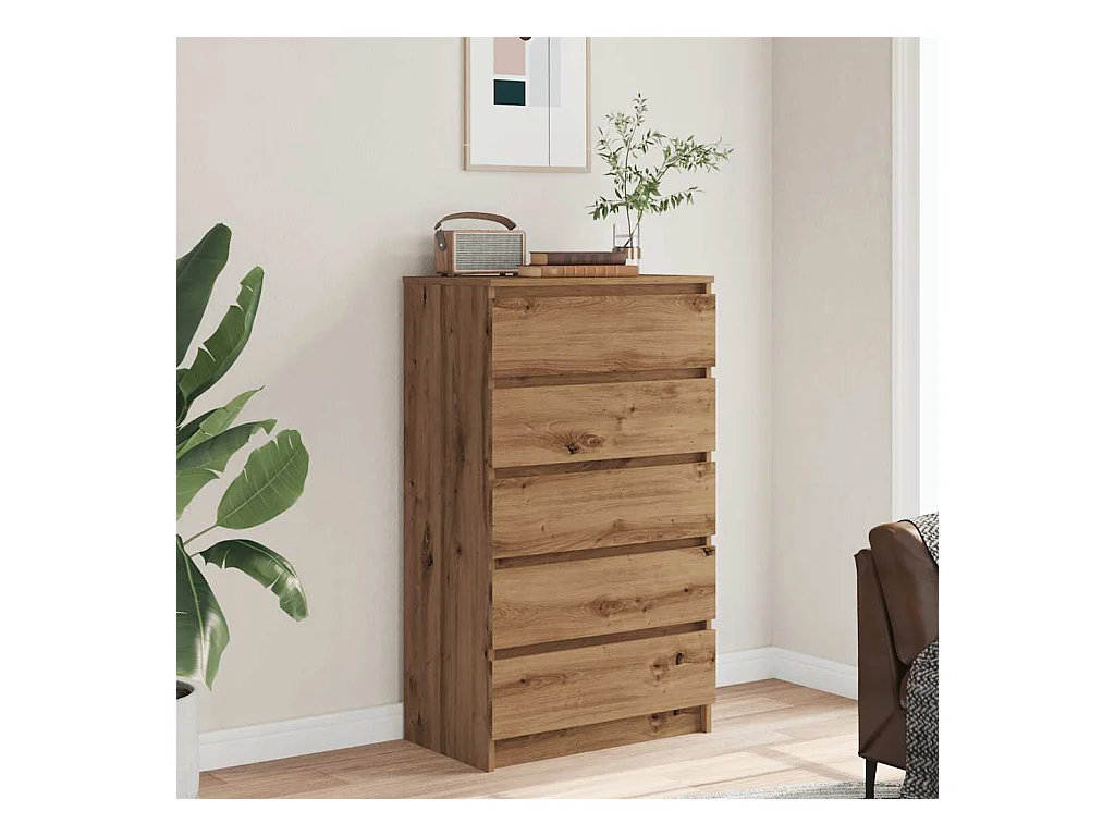 Commode chêne artisanal 60x36x103 cm bois d'ingénierie