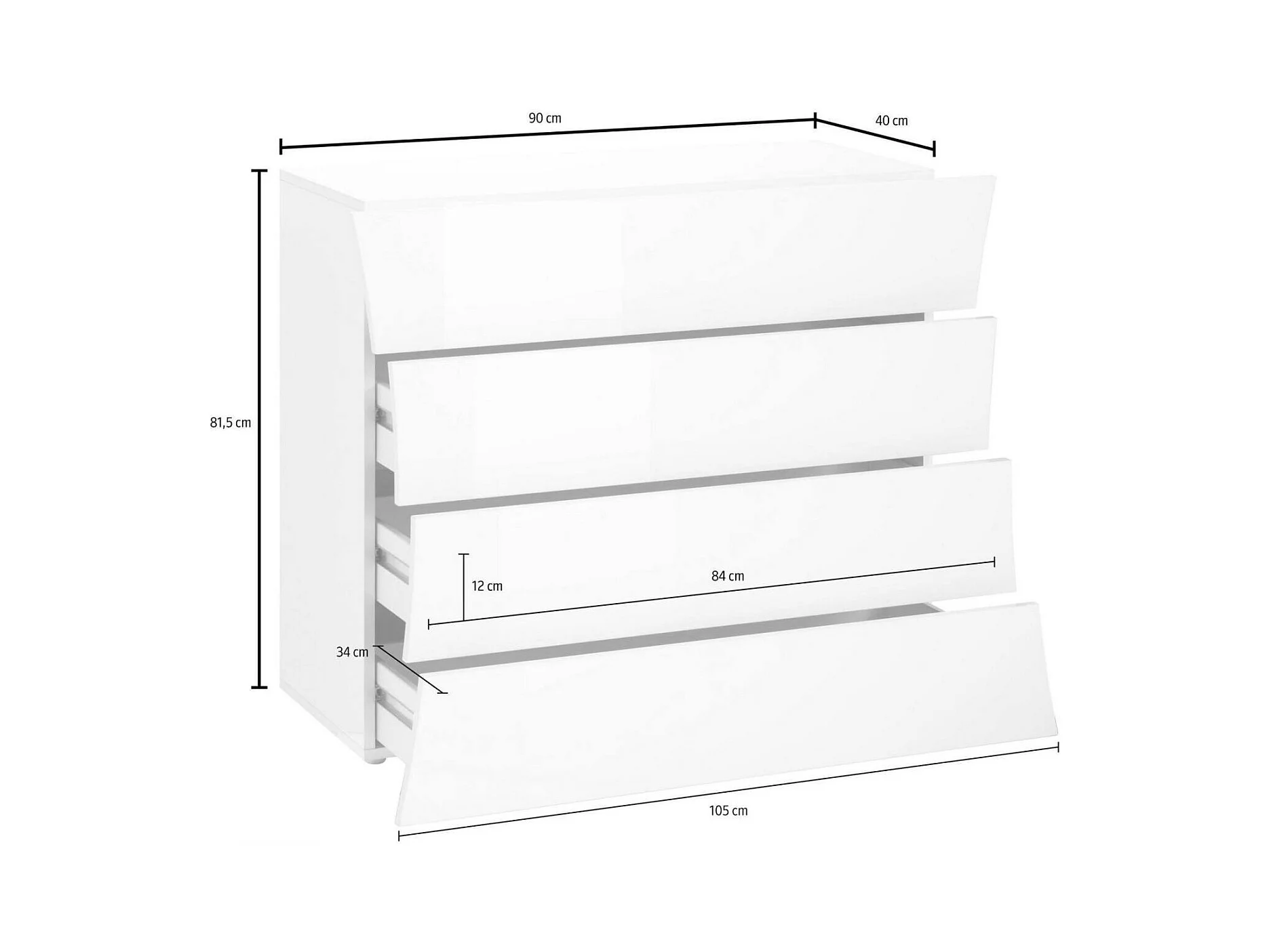 Commode Dabraha, Commode 4 tiroirs, Commode de chambre, 100% Made in Italy, 98x40h82 cm, Blanc brillant