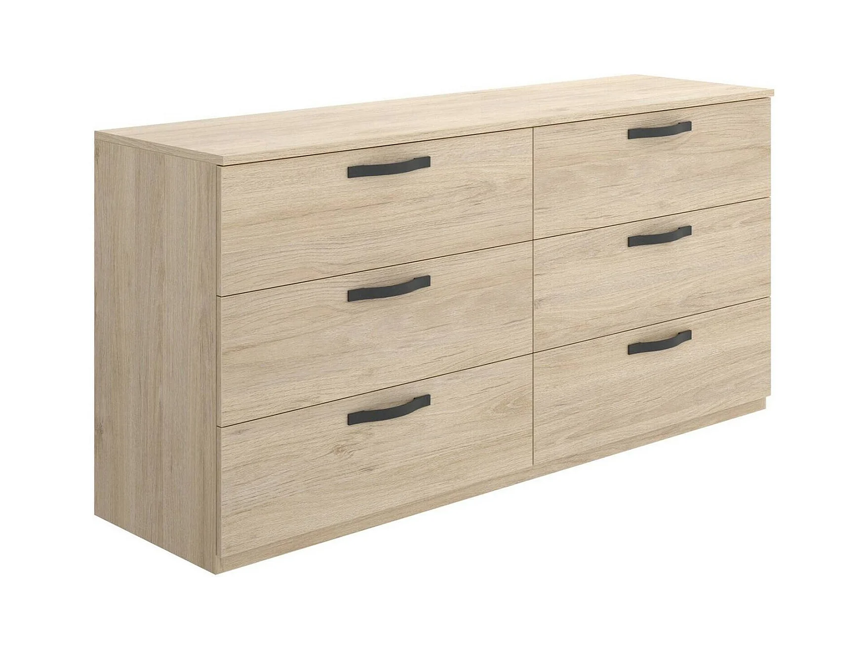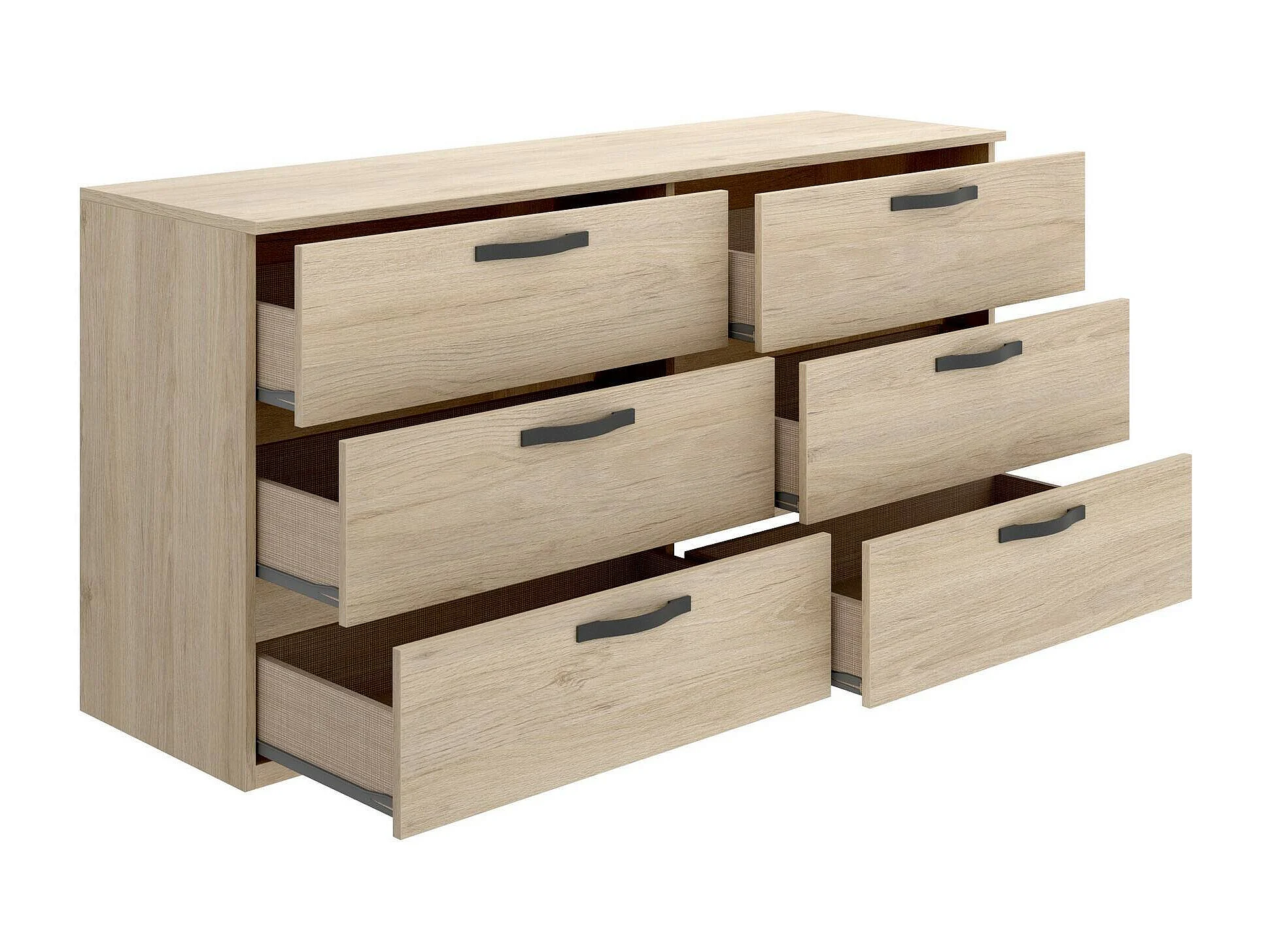Commode Daint, Commode de chambre à coucher, Commode avec 6 tiroirs, 140x45h72 cm, Chêne