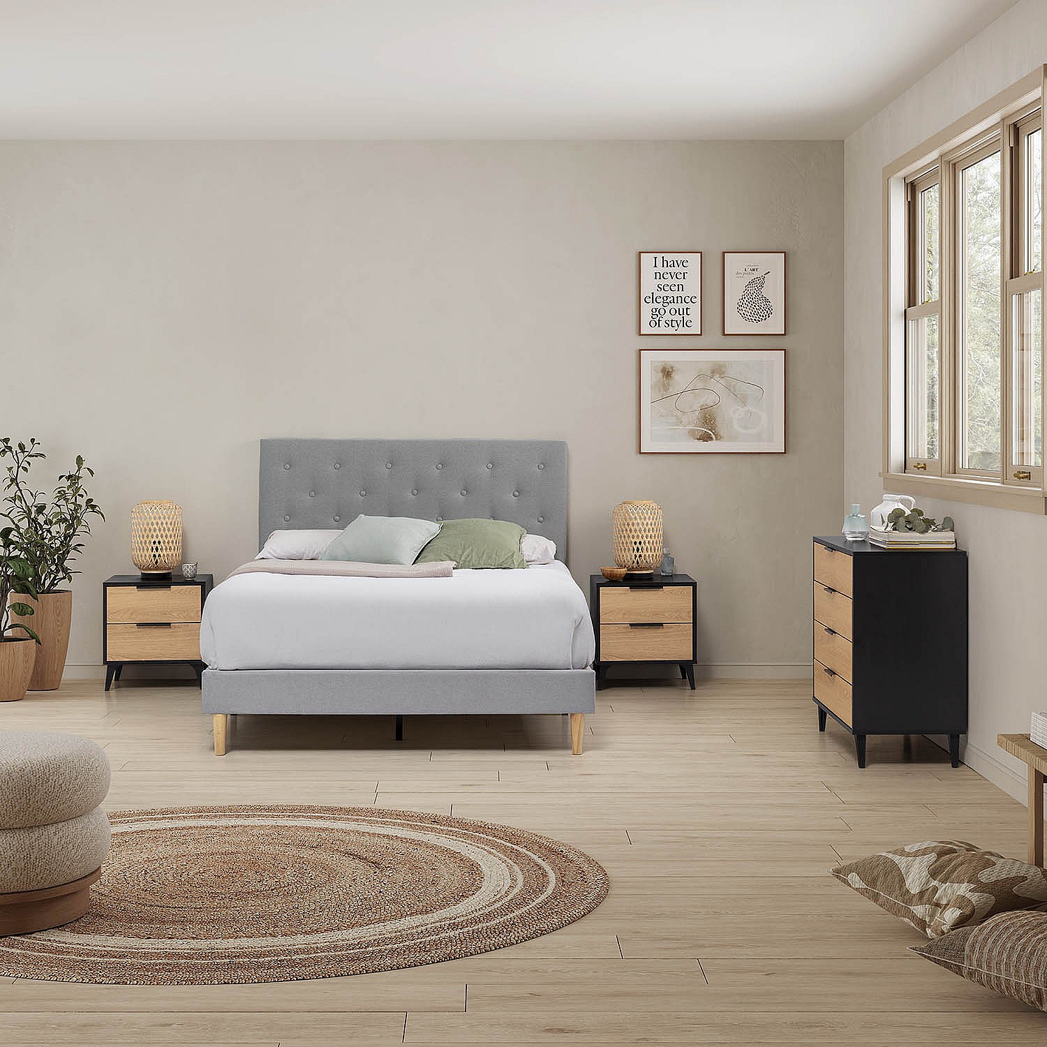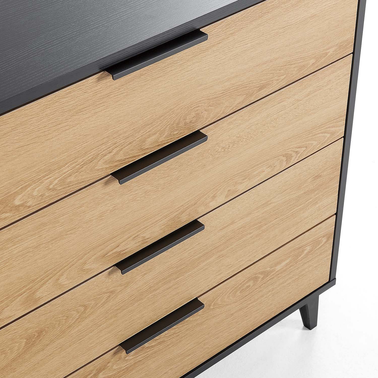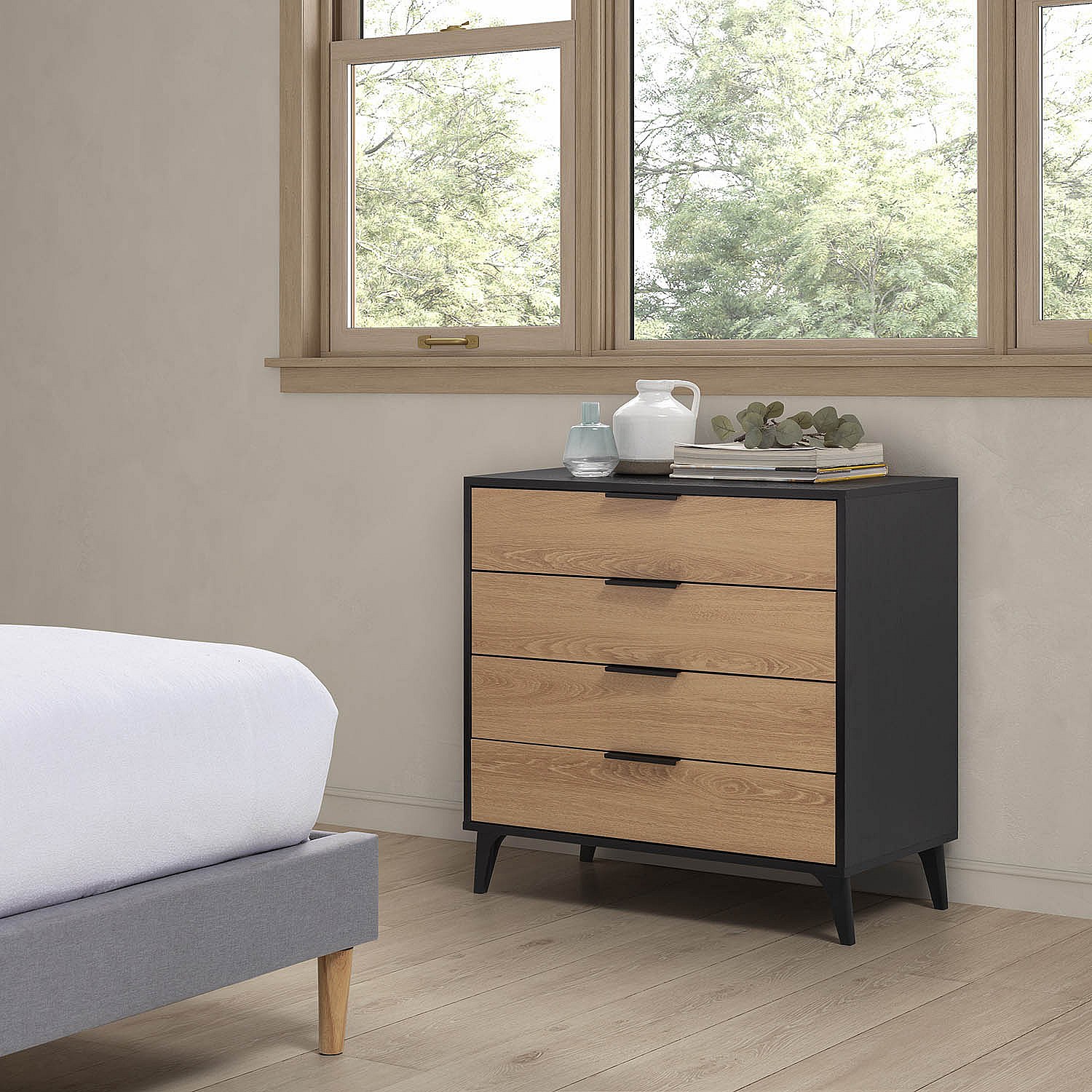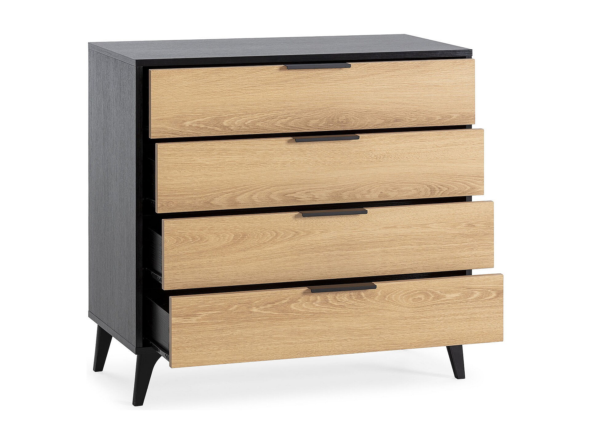 Commode de nuit Kalma 4 tiroirs coloris noir/chêne