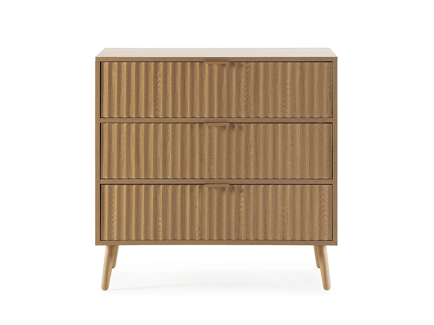 Commode de niut Santi 3 tiroirs couleur chêne, 77 cm largeur