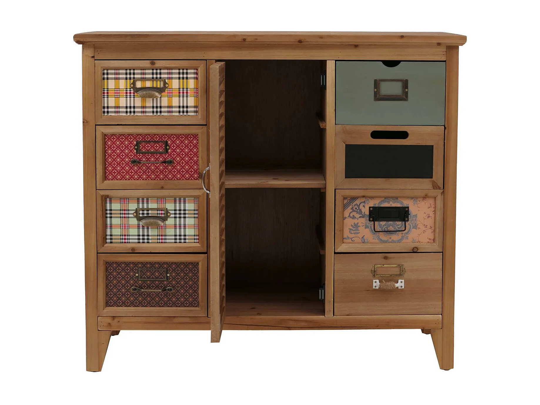 Commode 6 tiroirs 115 cm Couleur bois naturel, 100 x 34 x 73cm