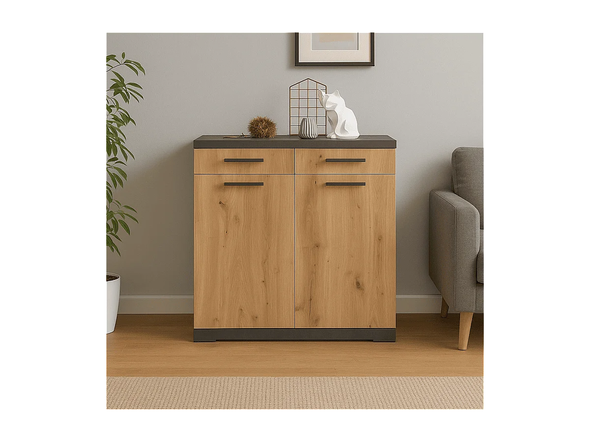 Commode de Rangement 2 Portes 2 Tiroirs L80cm - Bristol