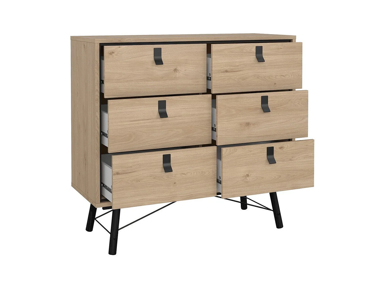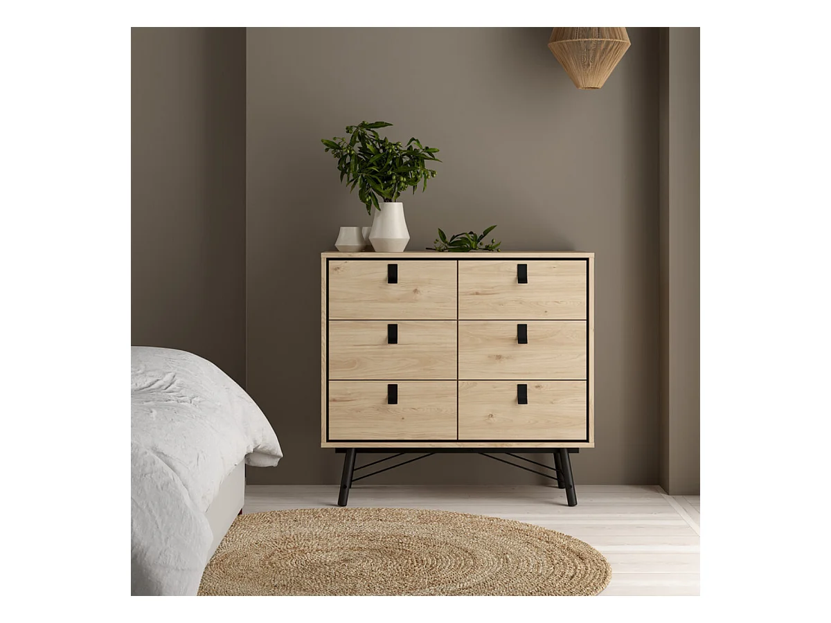 Commode 6 tiroirs décor chêne kronberg et blanc mat - CLYDE