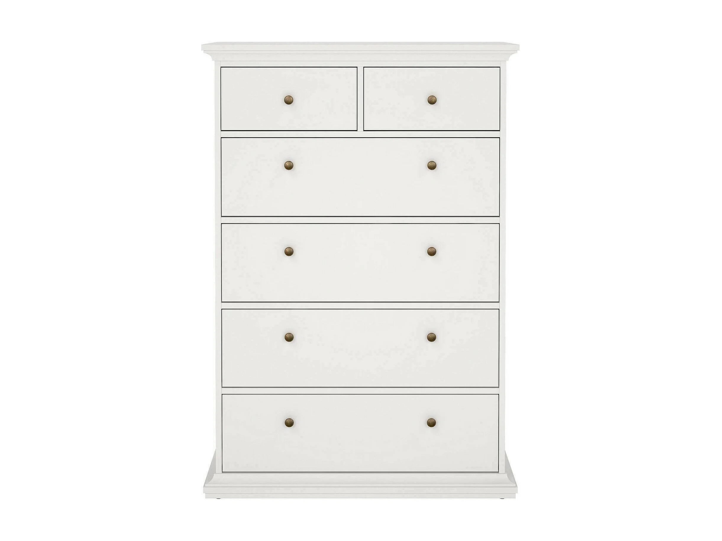 Commode Irving, commode 5 tiroirs, commode pour la chambre, commode moderne, 61x40h118 cm, blanc