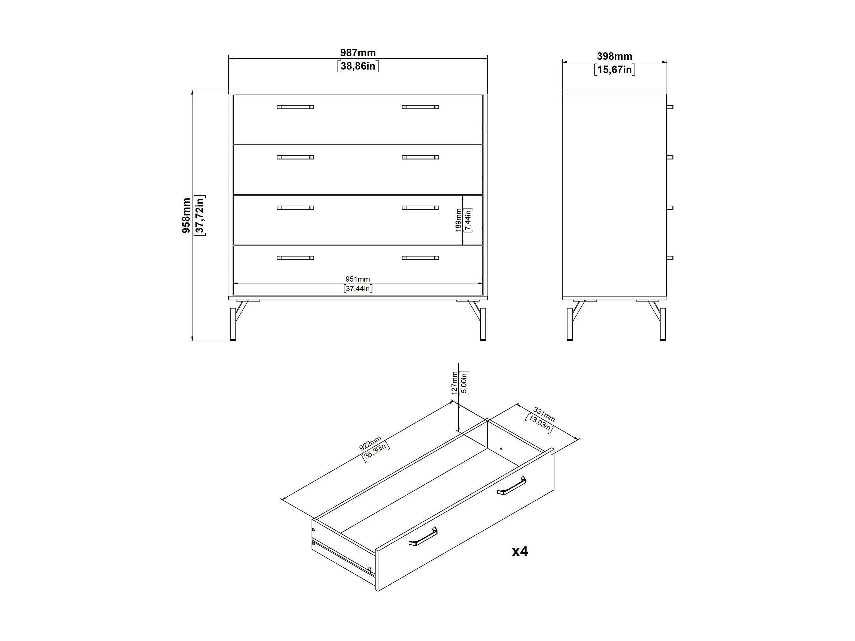 Commode Artic, Commode polyvalente, Commode de chambre, Meuble avec tiroirs, 77x50 h70 cm, Noir
