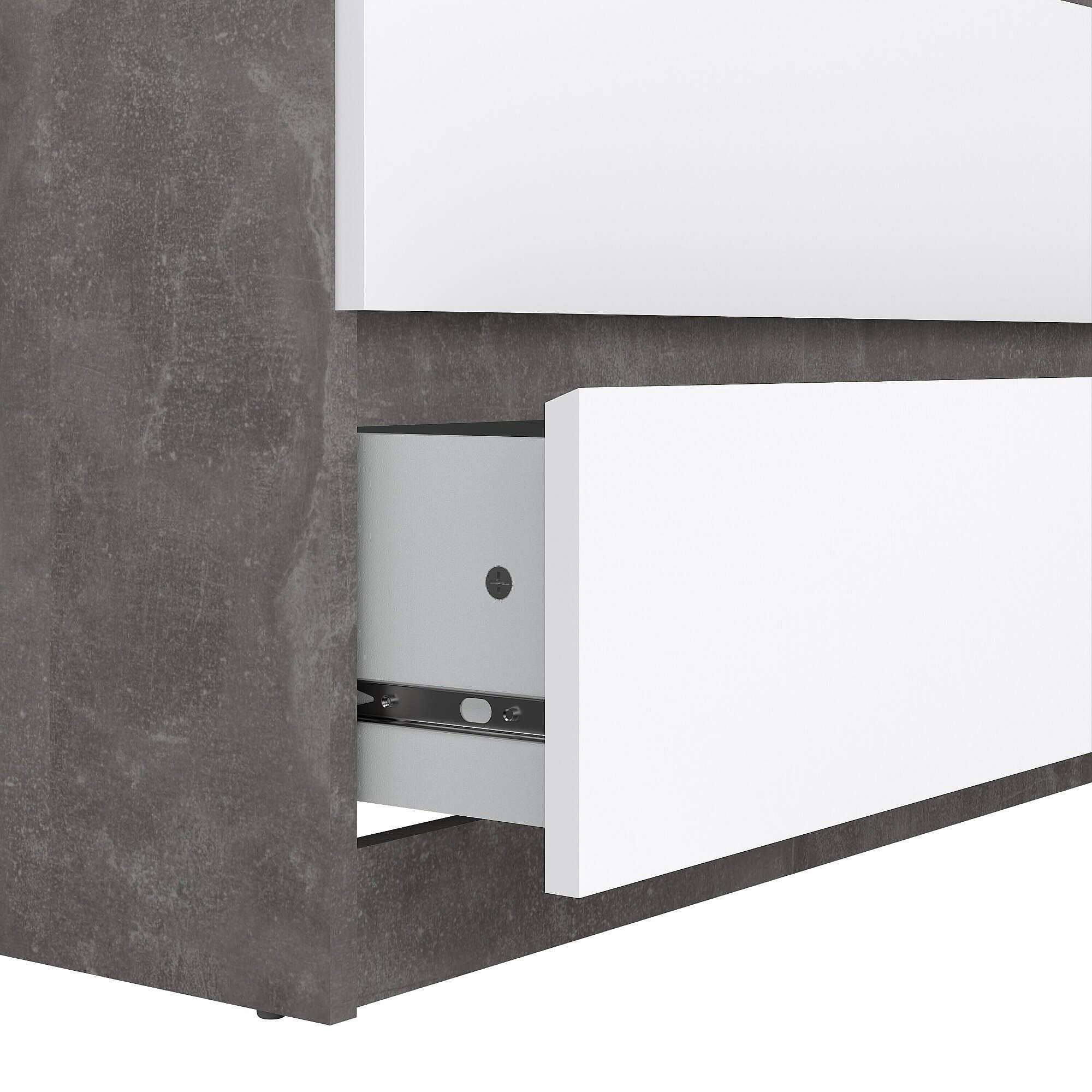 Commode Drenold, Commode polyvalente, Commode de chambre, Meuble avec tiroirs, 77x50 h70 cm, Ciment et blanc