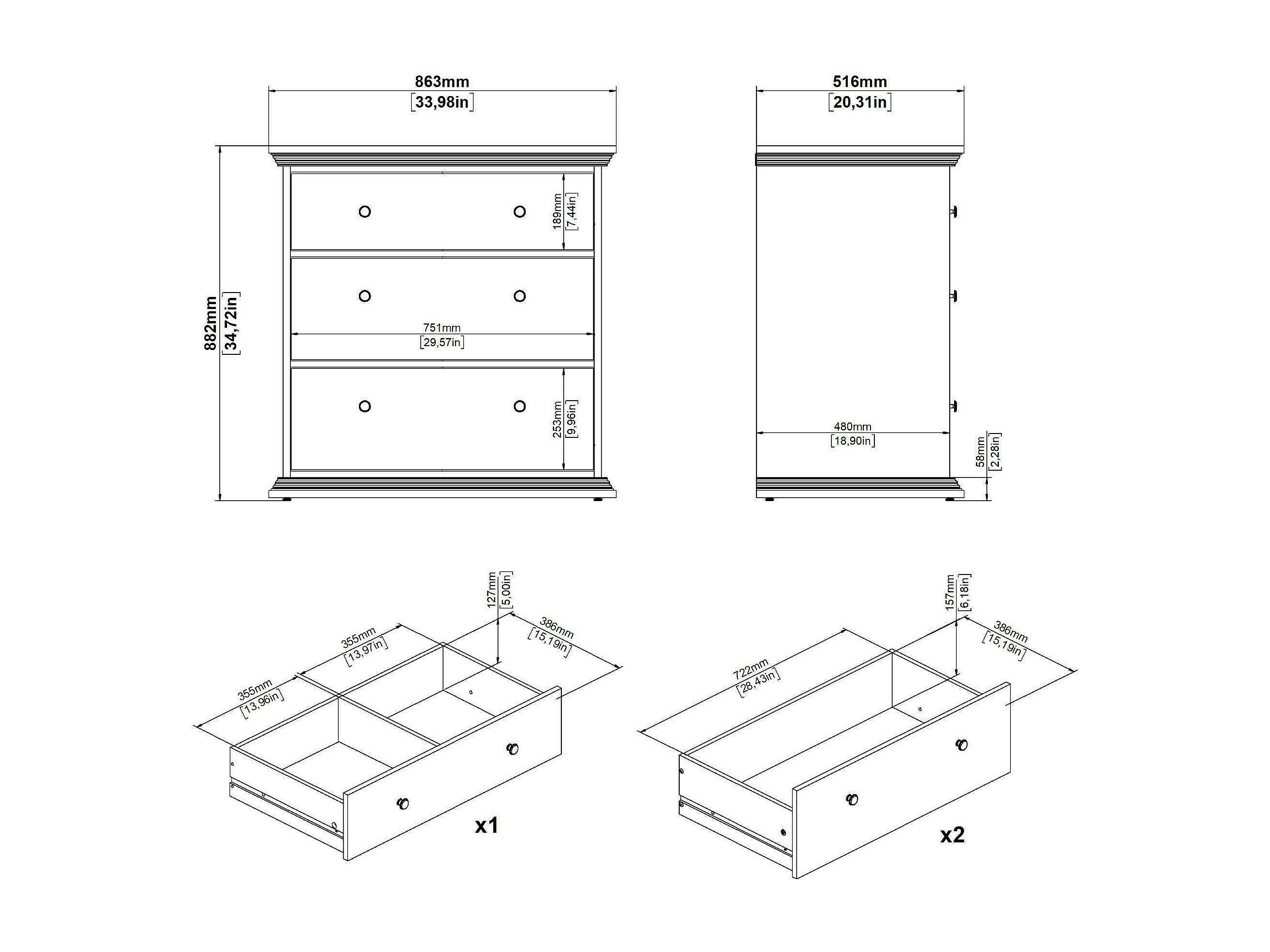 Commode Drenaul, Commode polyvalente, Commode de chambre, Meuble avec tiroirs, 74x36 h70 cm, Blanc