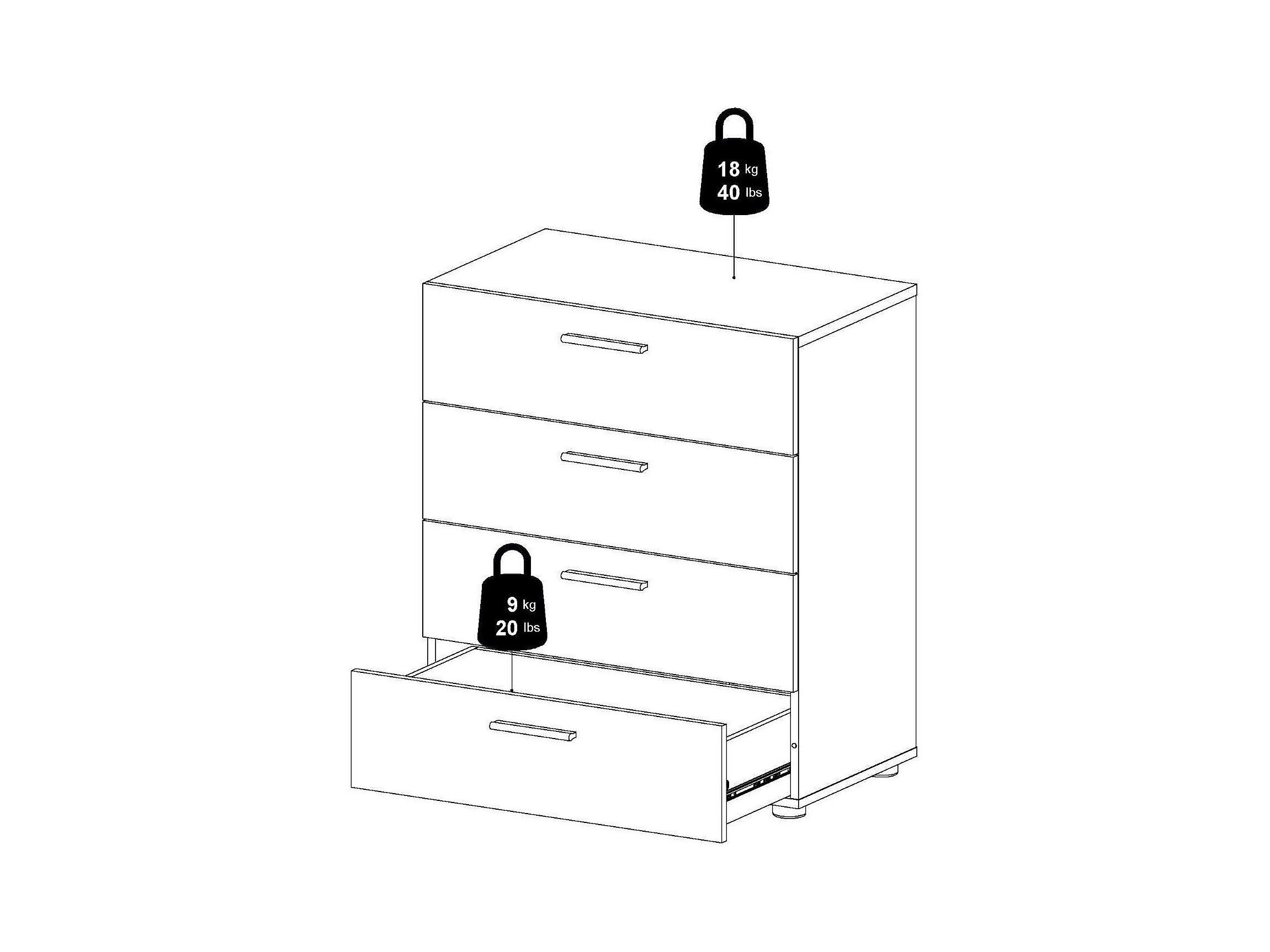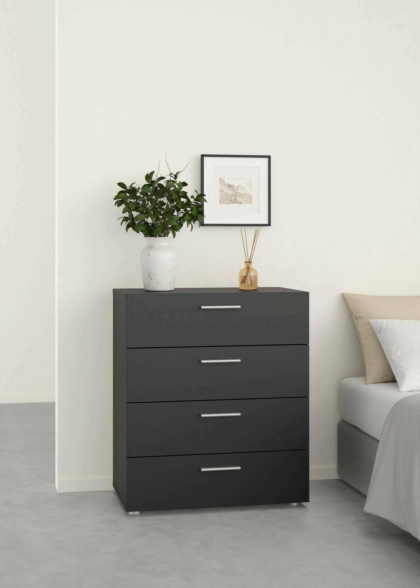 COMMODE - Commode polyvalente, Commode de chambre, Meuble avec tiroirs, 70x40 h82 cm, Noir. STRUCTURE ET UTILISATION - Commode avec tiroirs - Commode basse polyvalente, parfaite pour meubler une chambre, un salon, une chambre, un hall ou un placard de manière pratique et élégante en plus d'une armoire - Les tiroirs sont très spacieux, vous permettant de ranger à l'intérieur tout ce dont vous avez besoin de manière discrète et bien rangée - Article de design moderne et fonctionnel, sur la surface supérieure vous pouvez placer vos ornements préférés pour donner au produit un style personnalisé pour compléter le meuble. QUALITÉ ET DESIGN - Meuble au design moderne et élégant, parfait pour meubler un environnement contemporain et lumineux - Idéal pour ceux qui recherchent des solutions fonctionnelles et peu encombrantes, ce produit est parfait pour les maisons et les appartements de toutes tailles - Garantie de deux ans à compter de la date d'achat. CARACTÉRISTIQUES TECHNIQUES - Accessoire d'ameublement polyvalent, conçu pour une intégration facile avec d'autres meubles - Emballage résistant, conçu pour le commerce électronique - Matériau: Panneau de particules mélaminé - Informations supplémentaires: Article certifié EPA 40 CFR TSCA - Libération de formaldéhyde conforme aux directives IOS/MAT/0181/EN 16930 - Démonté - Equipé d'un kit de montage - Quatre tiroirs. DIMENSIONS EN CM - Commode : Longueur: 70 Largeur: 40,25 Hauteur: 82 - Dimensions supplémentaires: Ouverture du tiroir : 23,3 cm