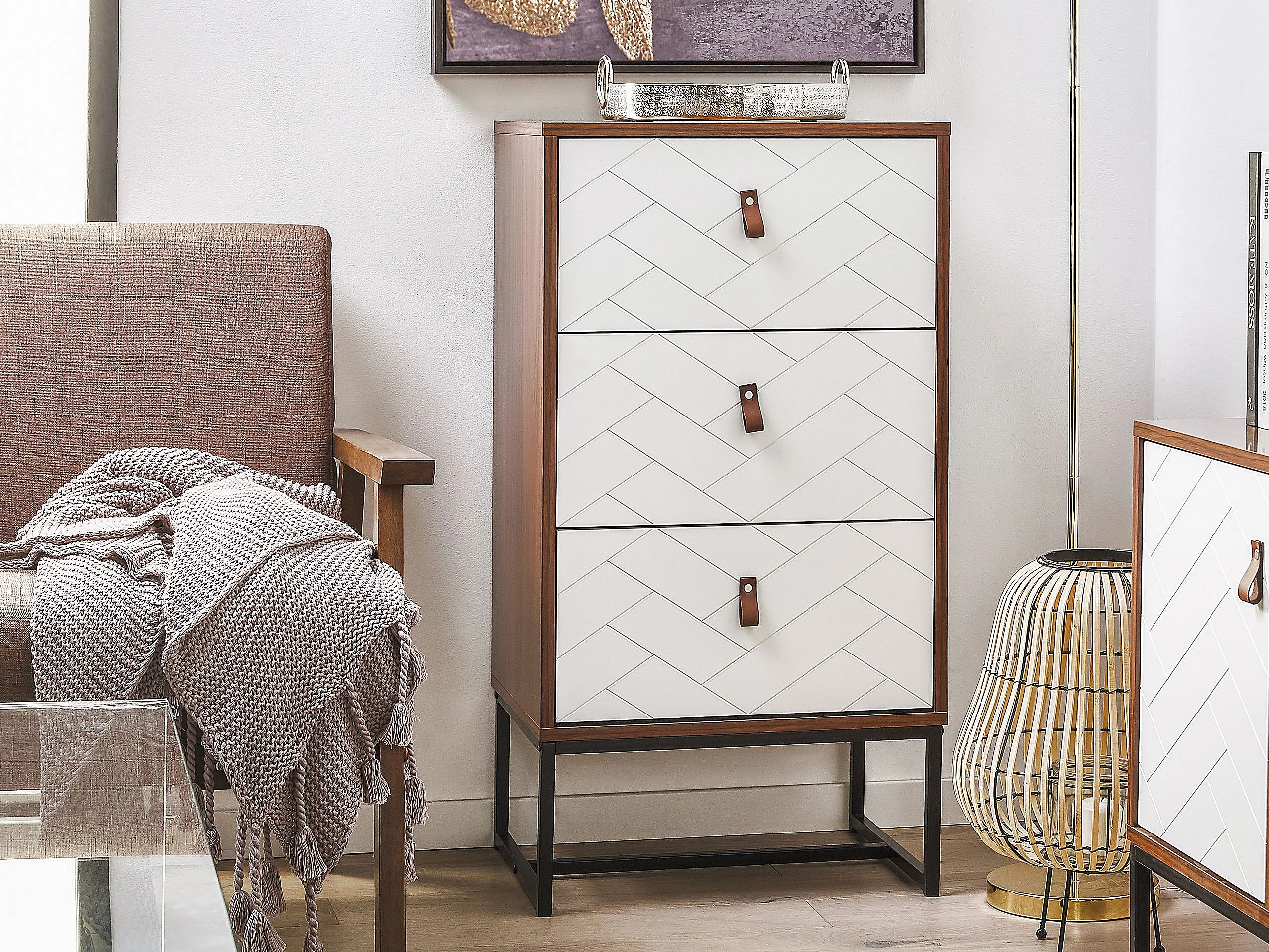 Commode à 3 tiroirs NUEVA Marron foncé/blanc