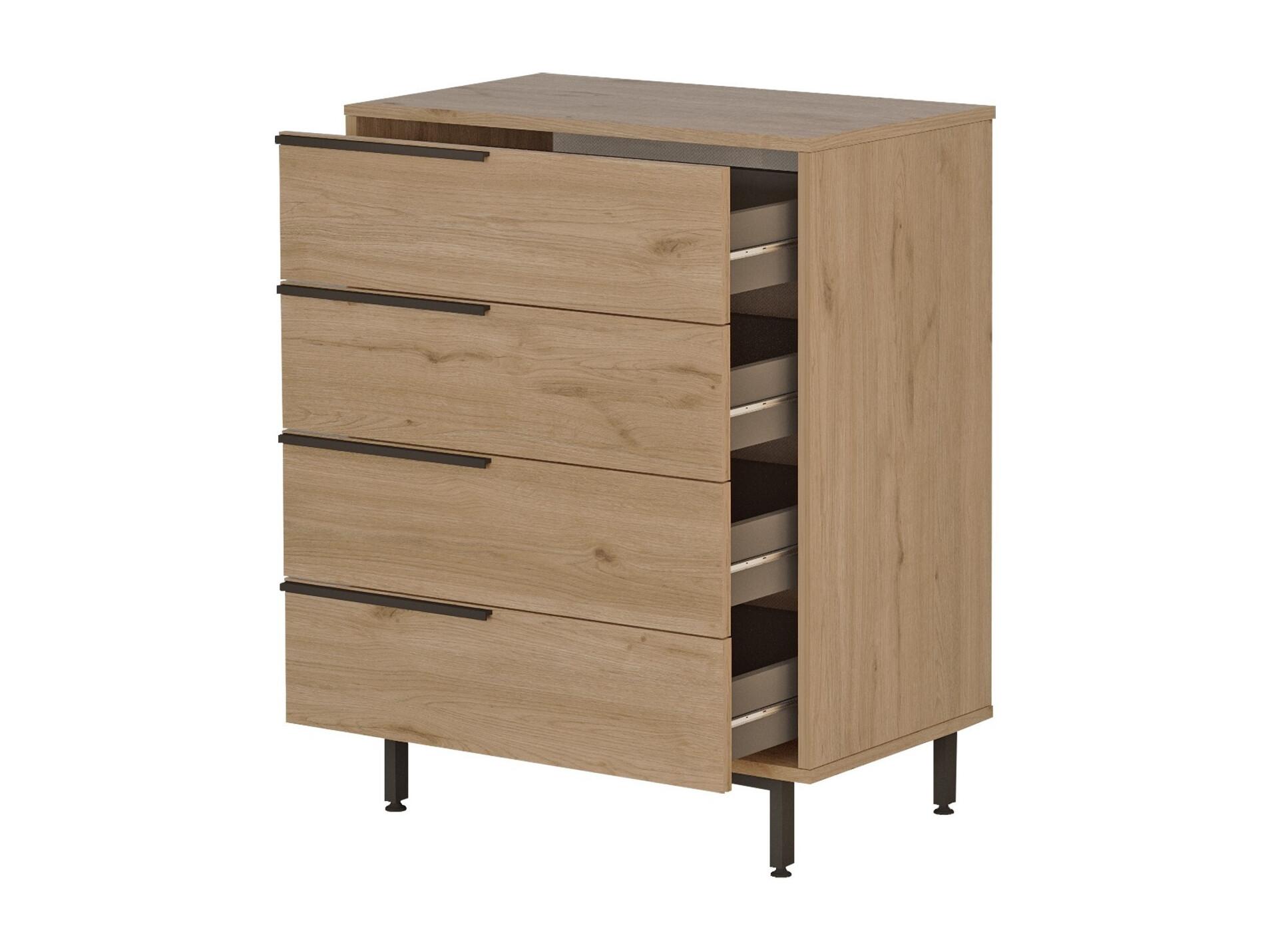 Commode 4 tiroirs bois et rotin Zenax 75cm-Couleur Chêne clair