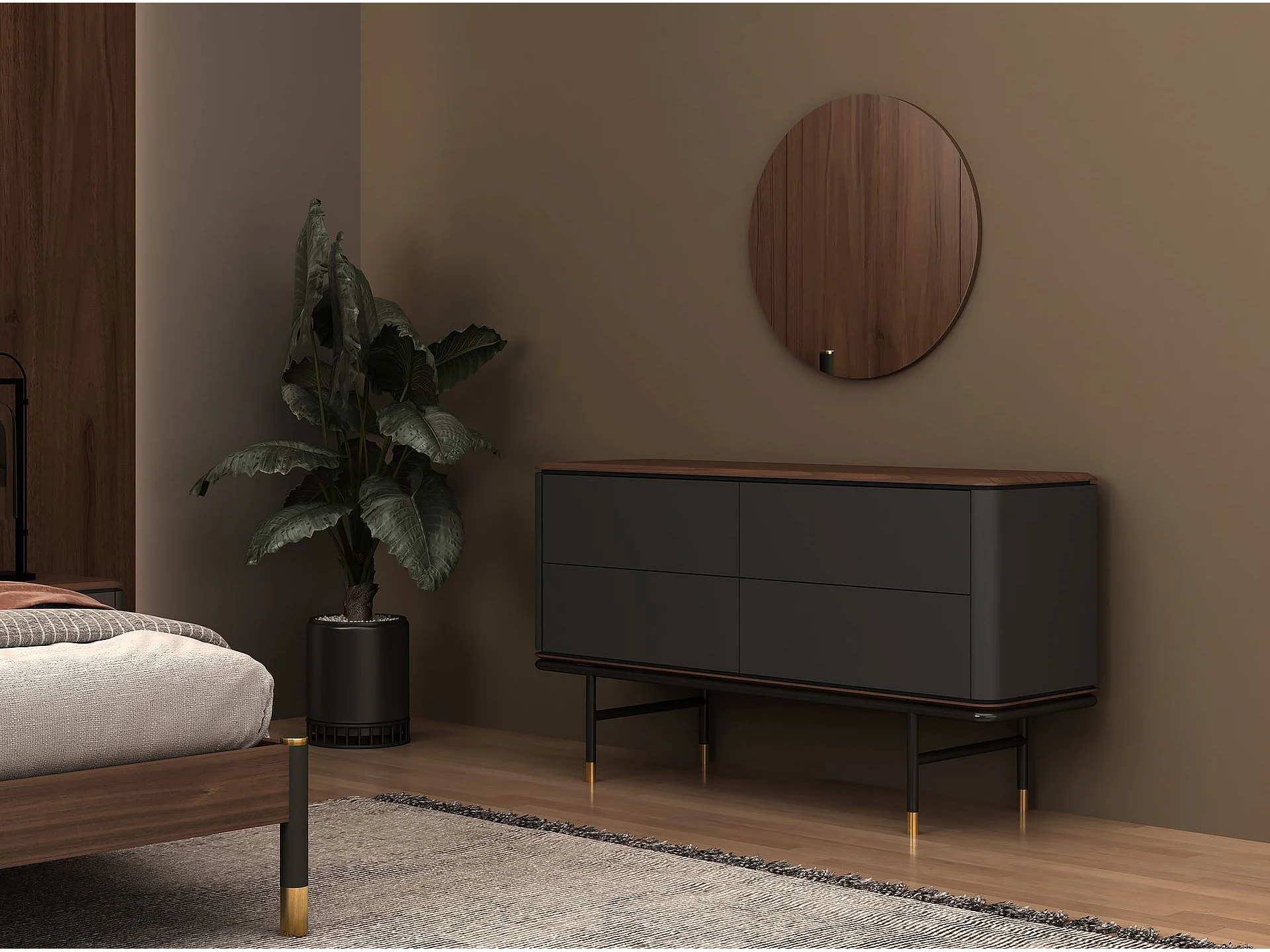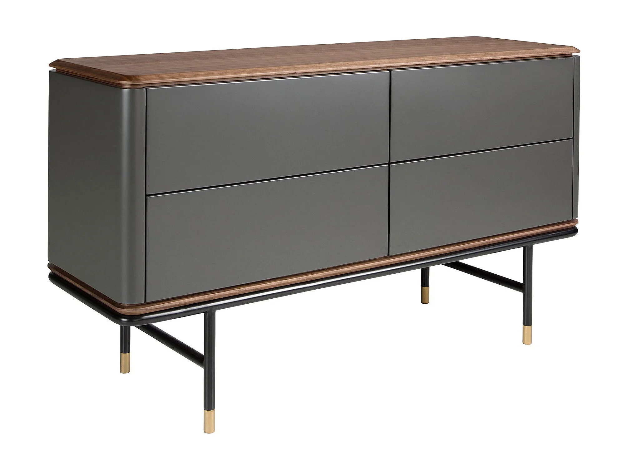 Commode en bois gris foncé mat, acier noir et plateau en noyer 7172 ANGEL CERDA