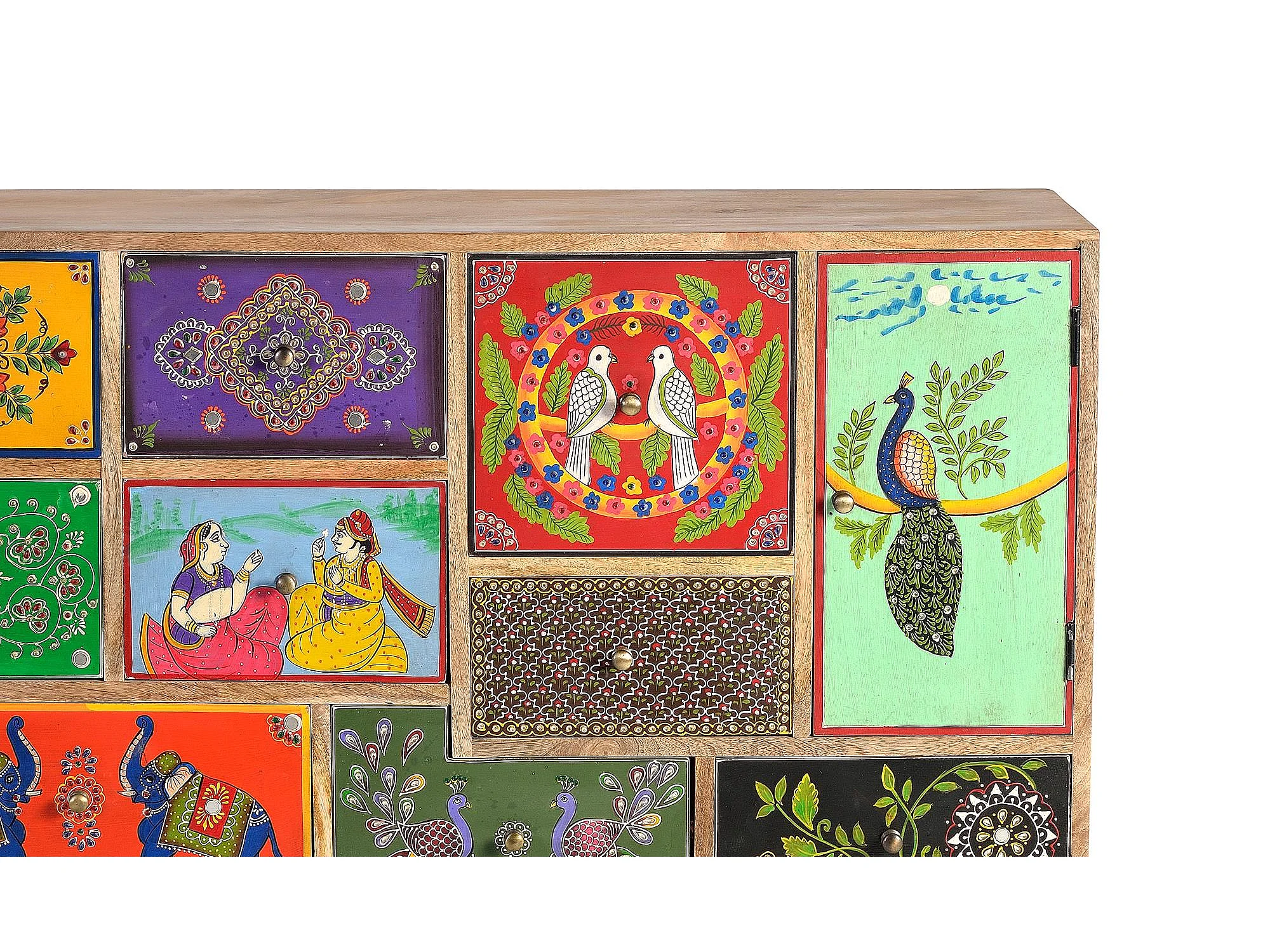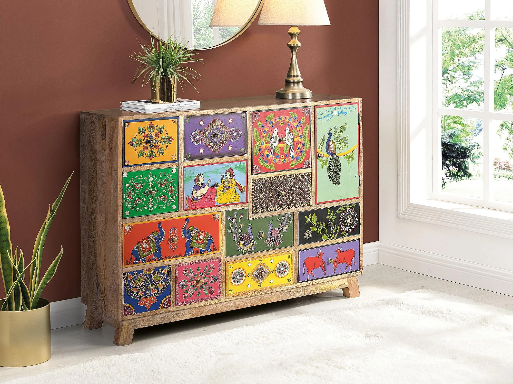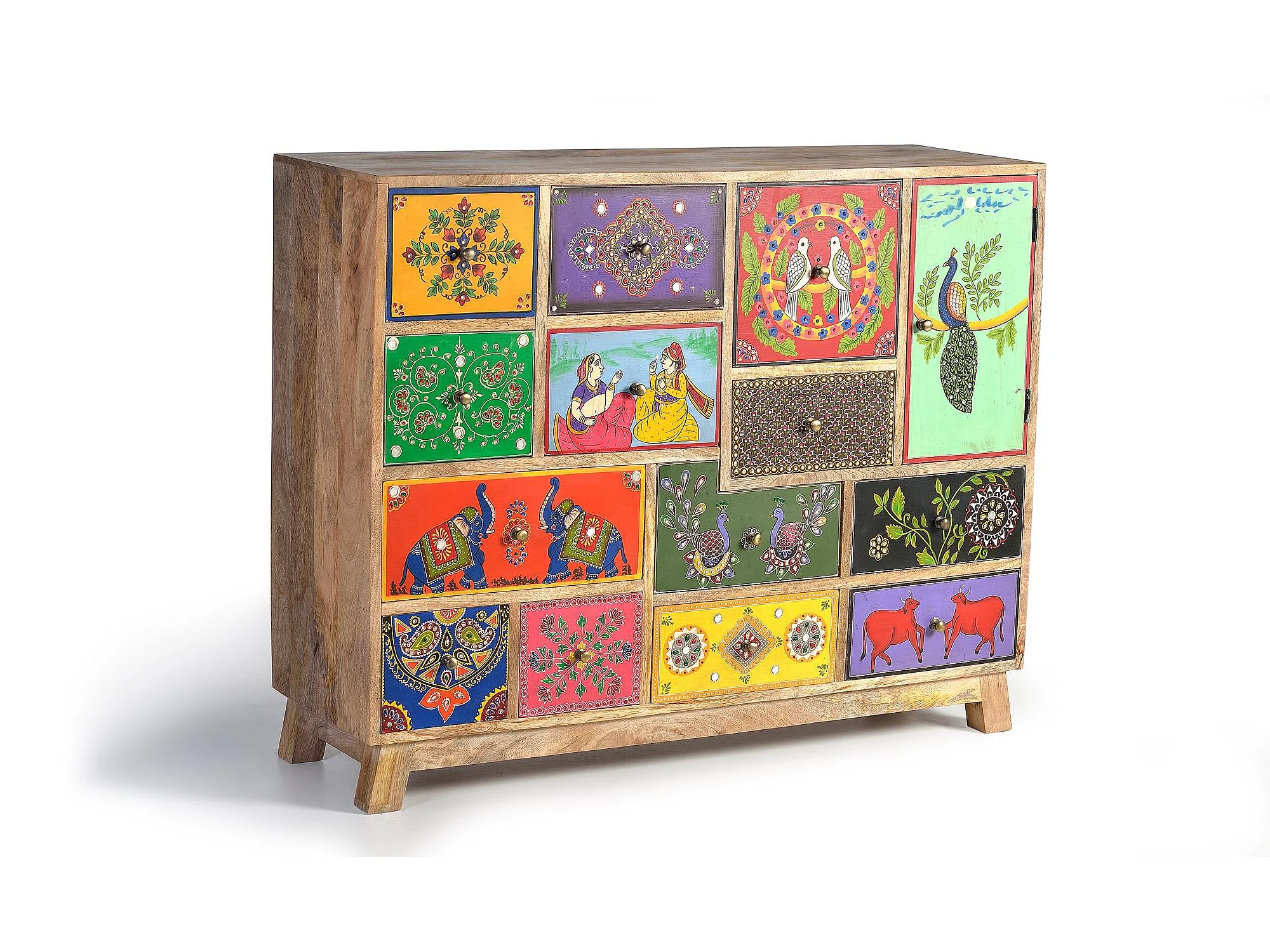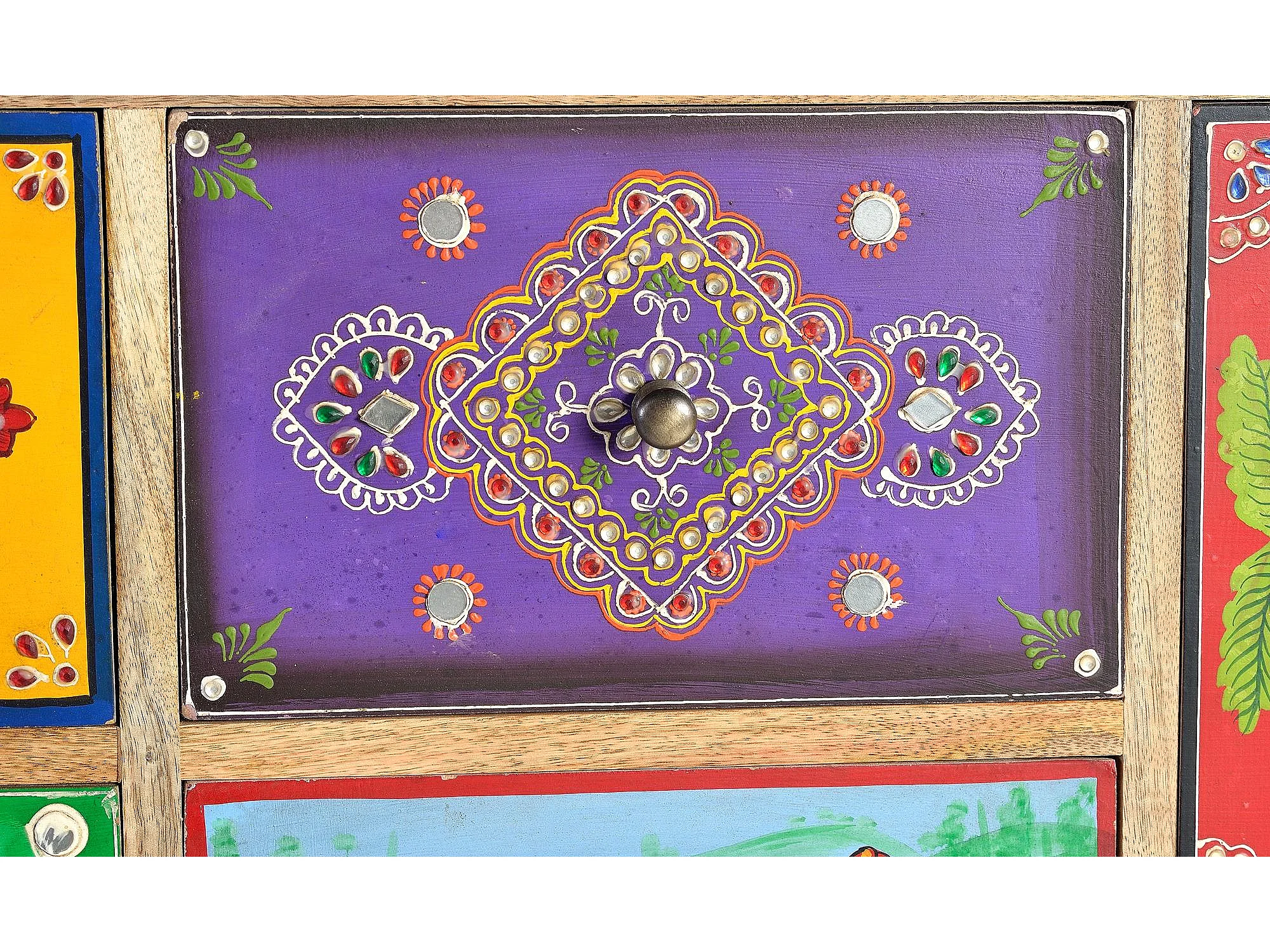 Commode en bois de manguier avec 6 tiroirs peints à la main