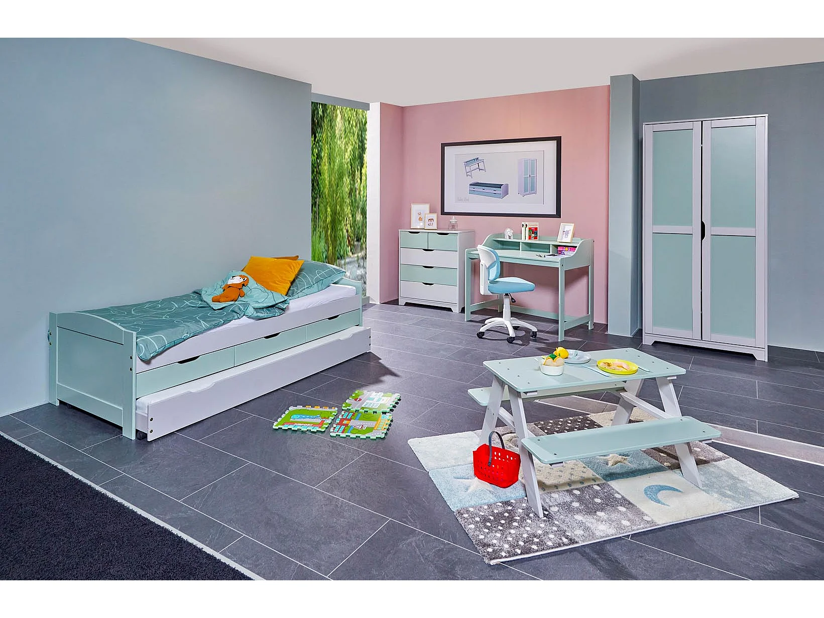 Commode Enfant 5 Tiroirs "Paty" 92cm Vert Sauge