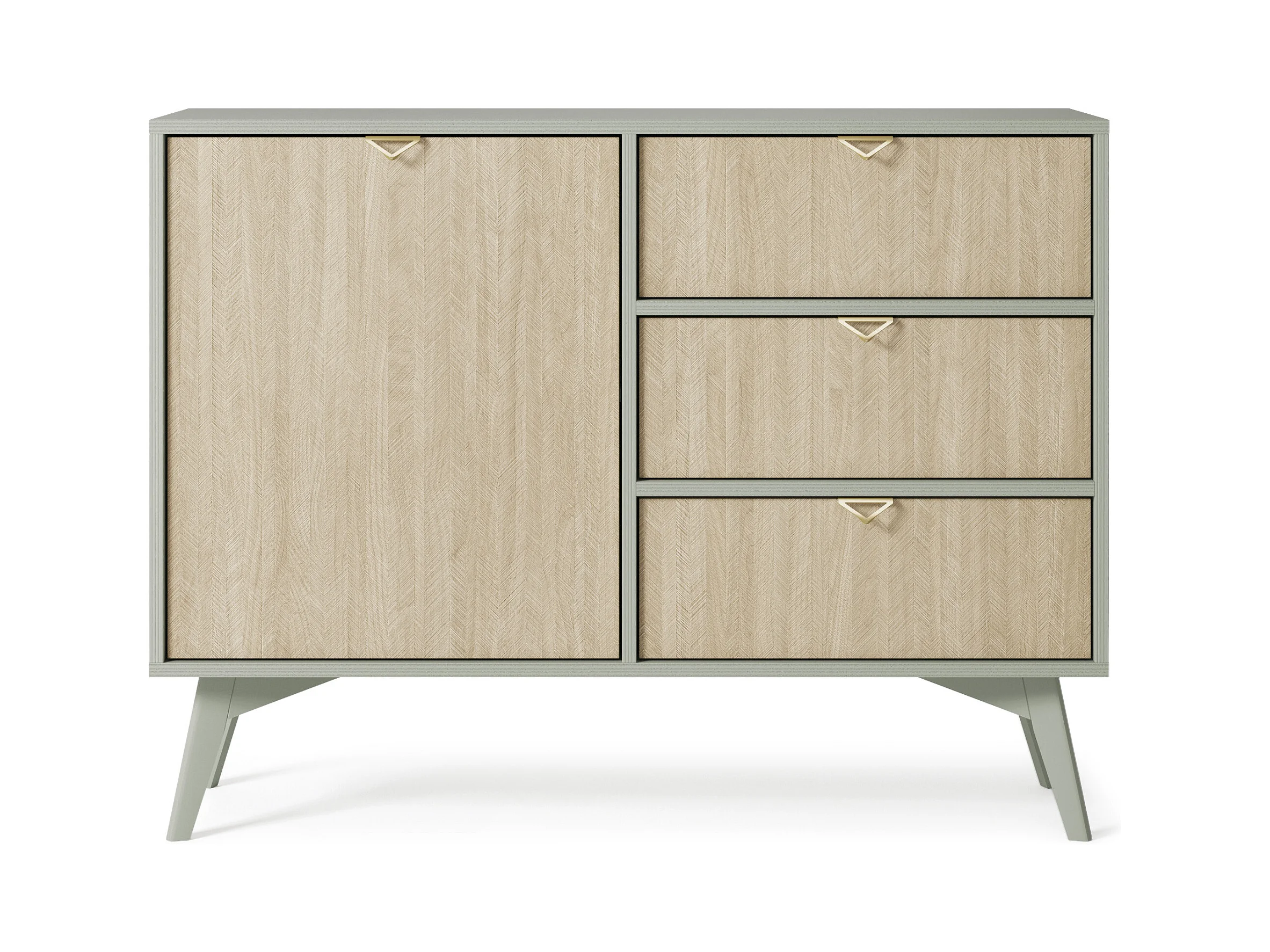Commode : Eucalyptus / Chevrons scandi, Pieds Bois, 106 x 80 x 38cm