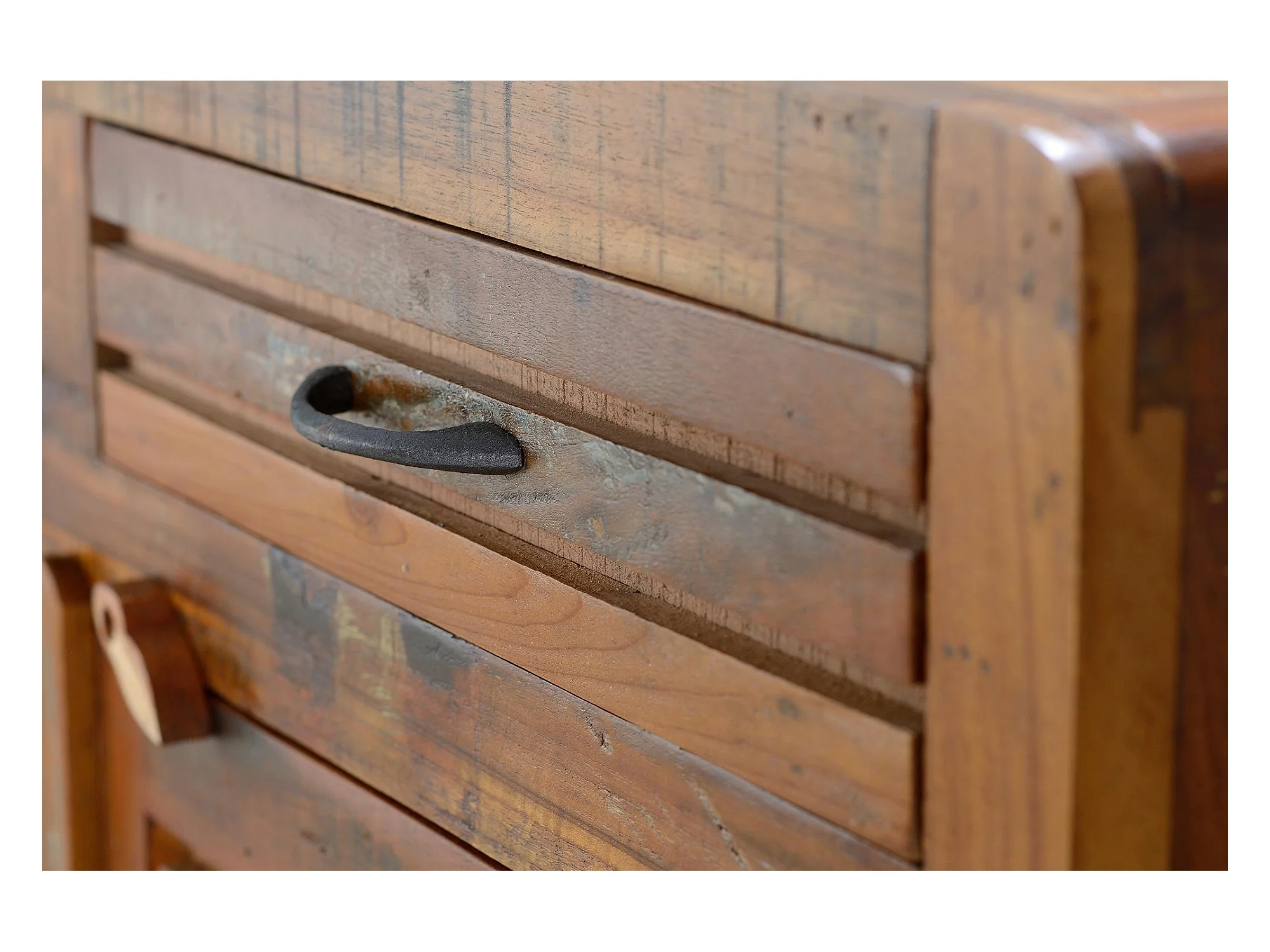Commode industriel 3 portes 2 tiroirs bois d'acacia et acier marron Palma 145cm