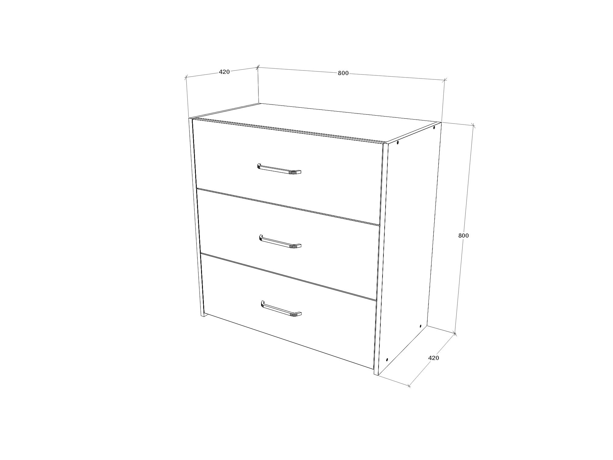 Commode haaus Malmo, 3 tiroirs, chêne artisan/argile, 80 x 42 x 80 cm