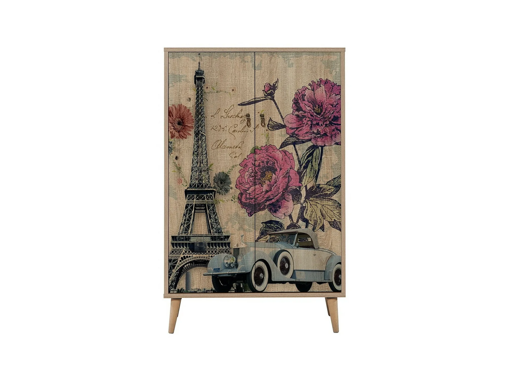Commode haute 2 portes en bois clair Kiza 728