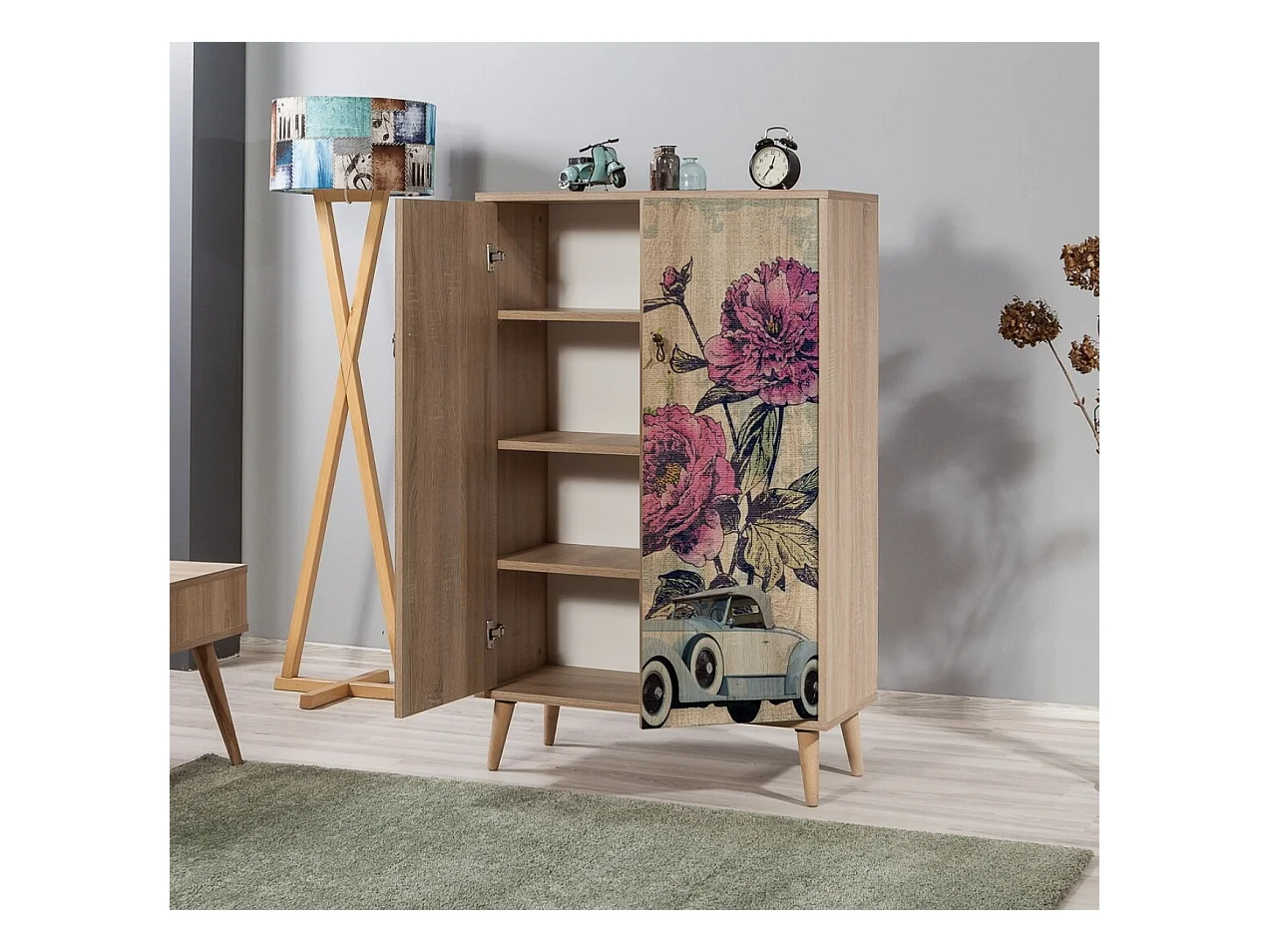 Commode haute 2 portes en bois clair Kiza 733
