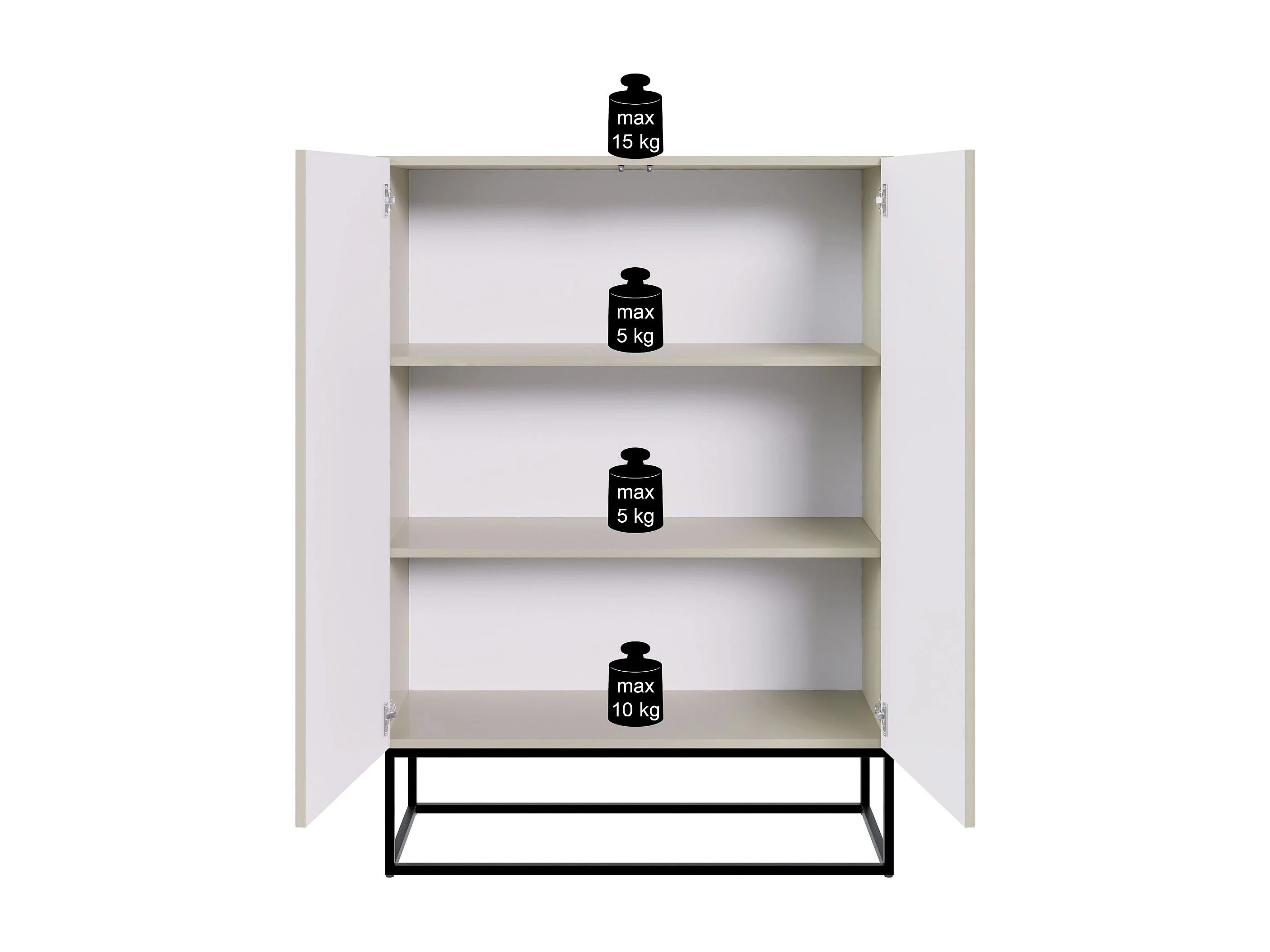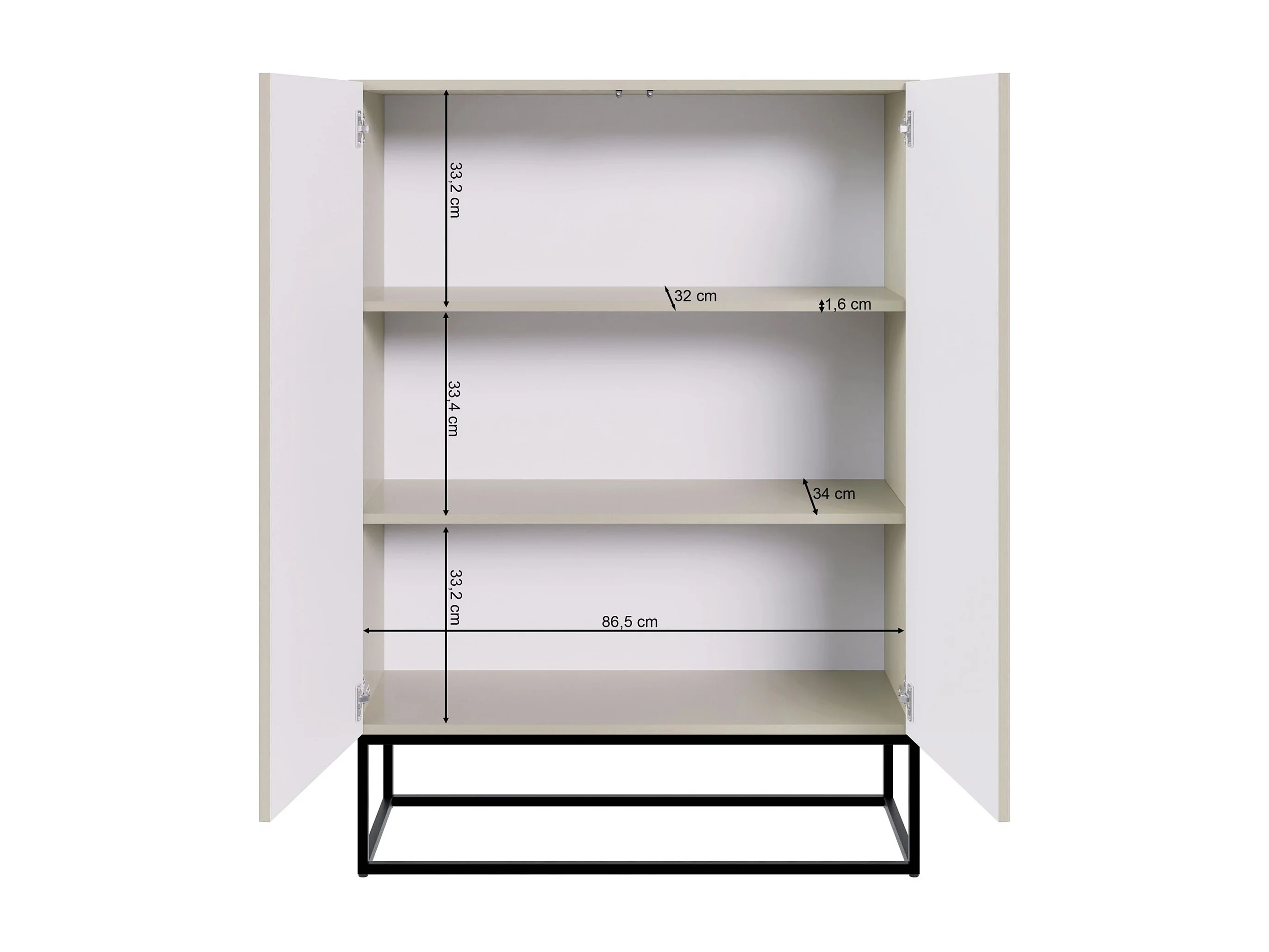 Buffet haute 2 portes - 90 cm - grège avec pieds noirs - VELDIO