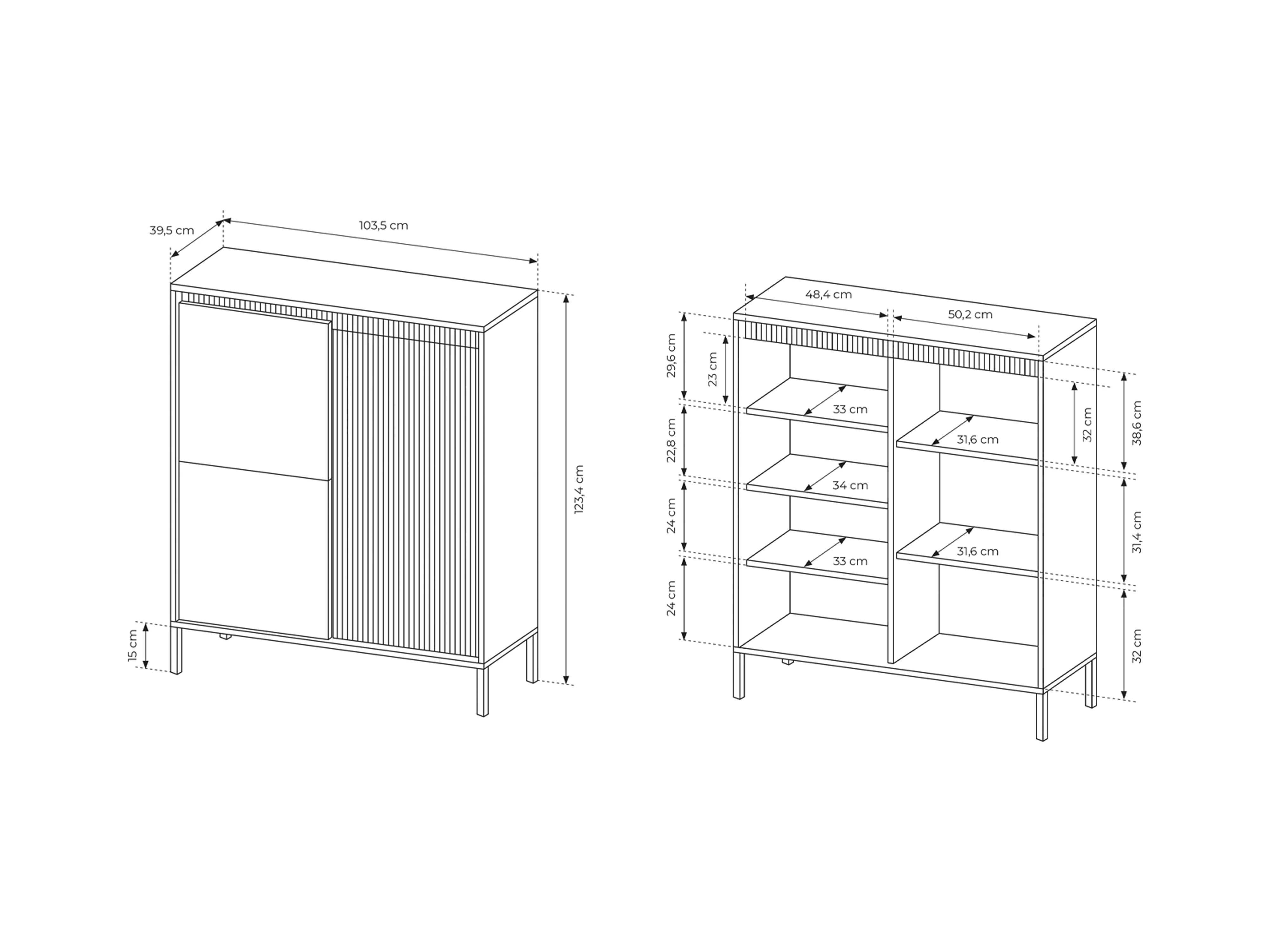 Commode Haute Beige 3 Portes SENSO 103,5x123,4x39,5 cm – Design Moderne, Façades Rainurées, Push-to-Open, Pieds Métal, Rangement Salon