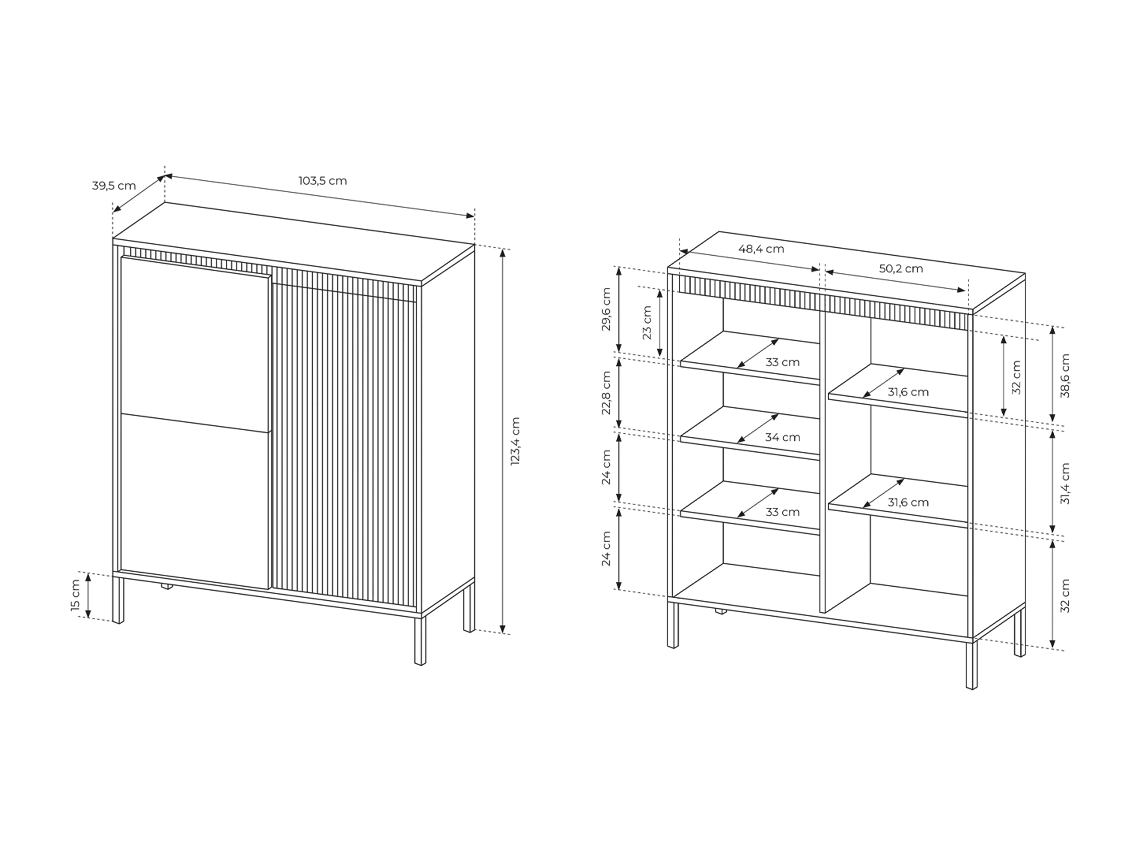 Commode Haute Noire 3 Portes SENSO 103,5x123,4x39,5 cm – Design Moderne, Façades Rainurées, Push-to-Open, Pieds Métal, Rangement Salon