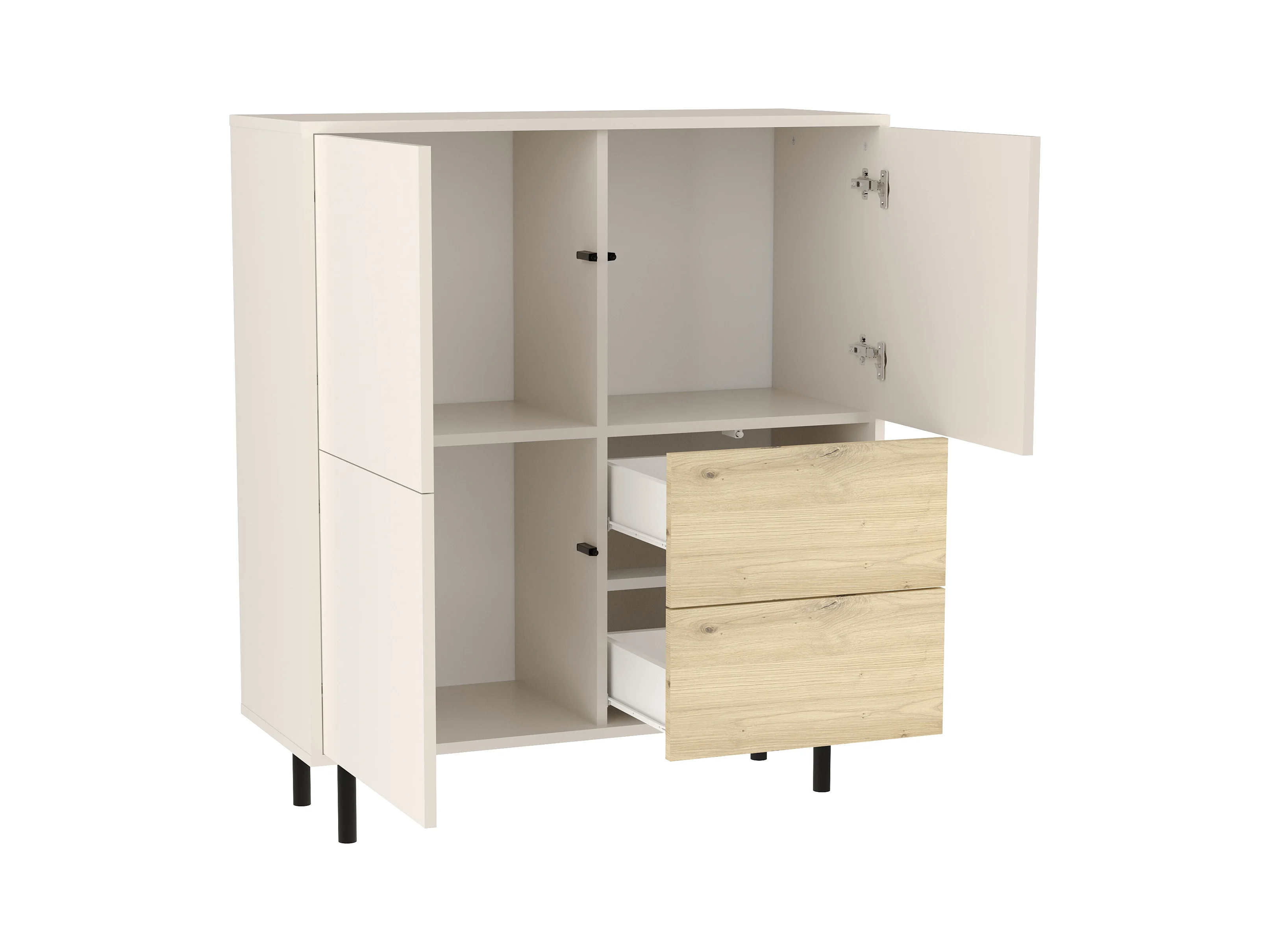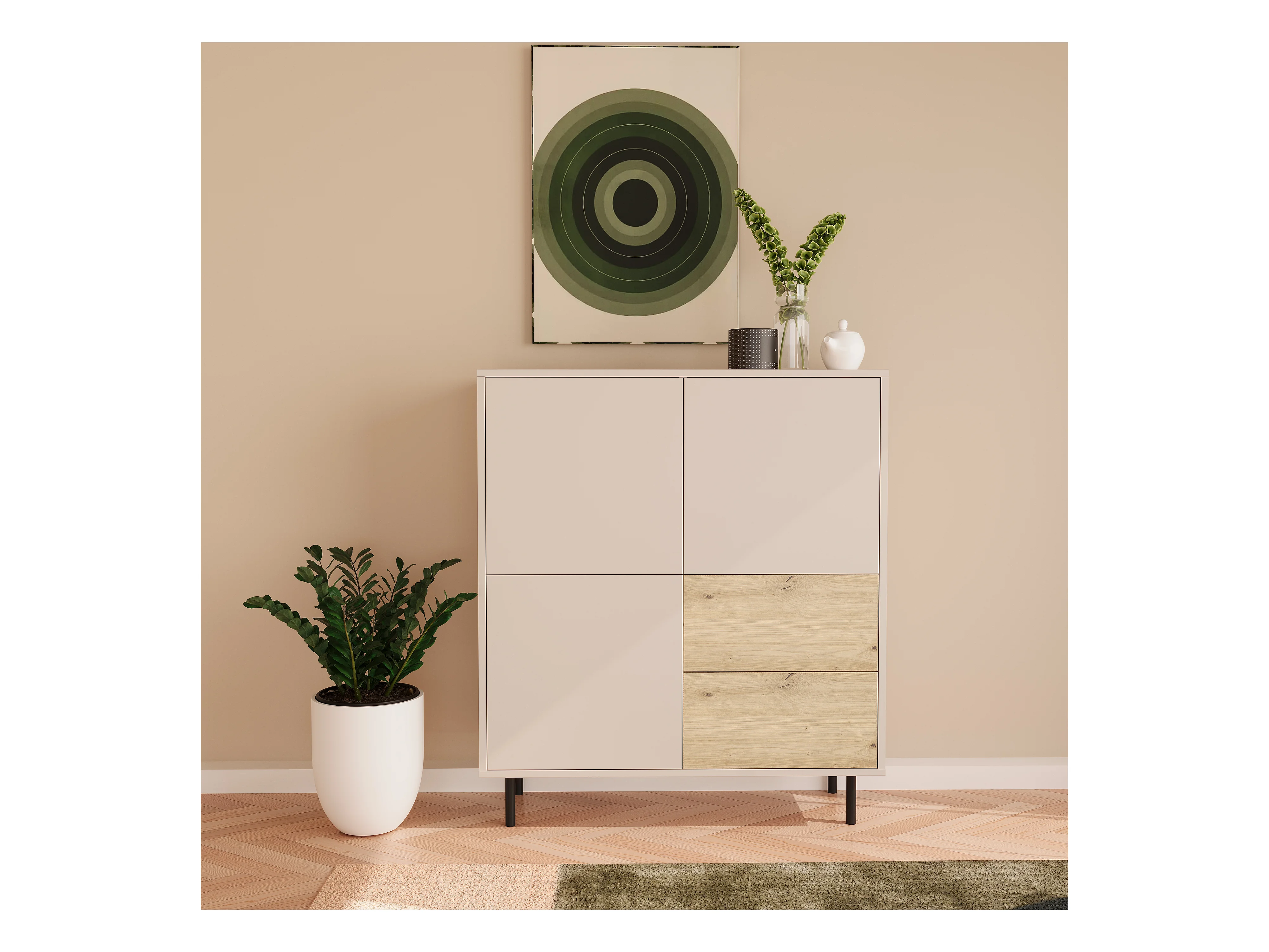Commode haute WENA, 2 tiroirs, 3 portes, Lola, 100x115x40 cm, Cachemire/Chêne artisanal
