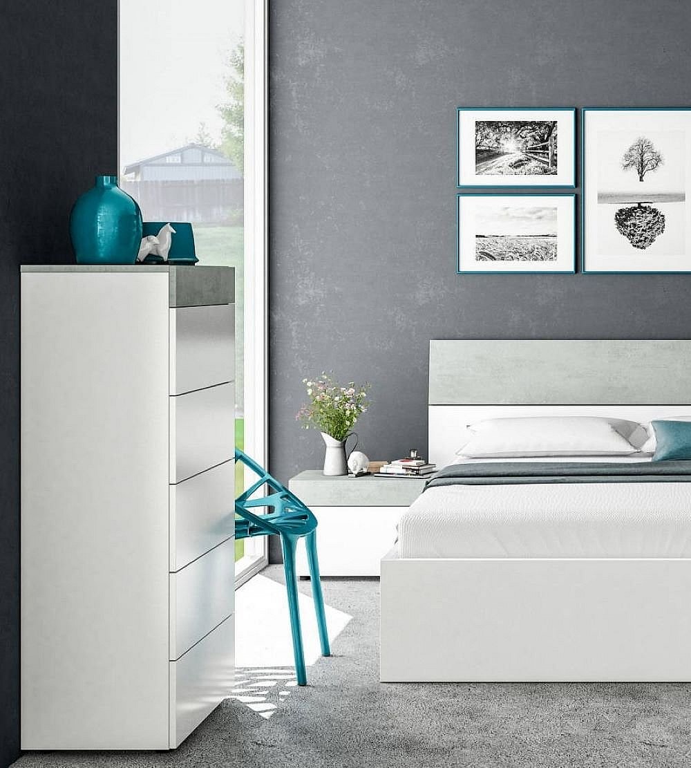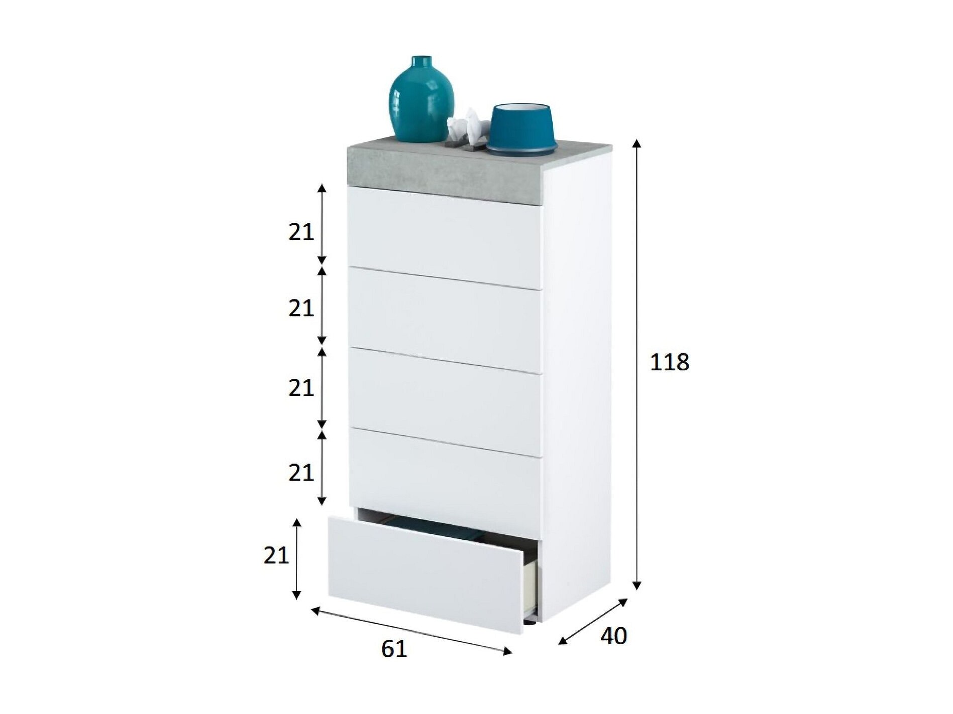 Commode Irving, commode 5 tiroirs, commode pour la chambre, commode moderne, 61x40h118 cm, blanc