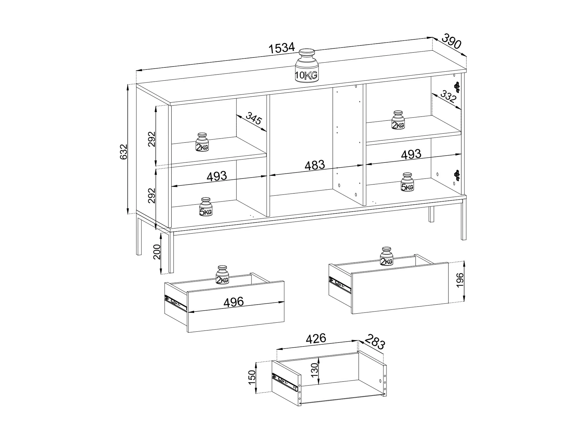 Commode large moderne et façade cannelée 154x83x39 cm, couleur Cachemire / Or