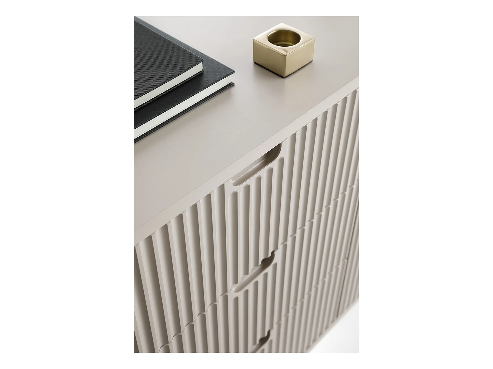 Commode Haute Beige 3 Portes SENSO 103,5x123,4x39,5 cm – Design Moderne, Façades Rainurées, Push-to-Open, Pieds Métal, Rangement Salon