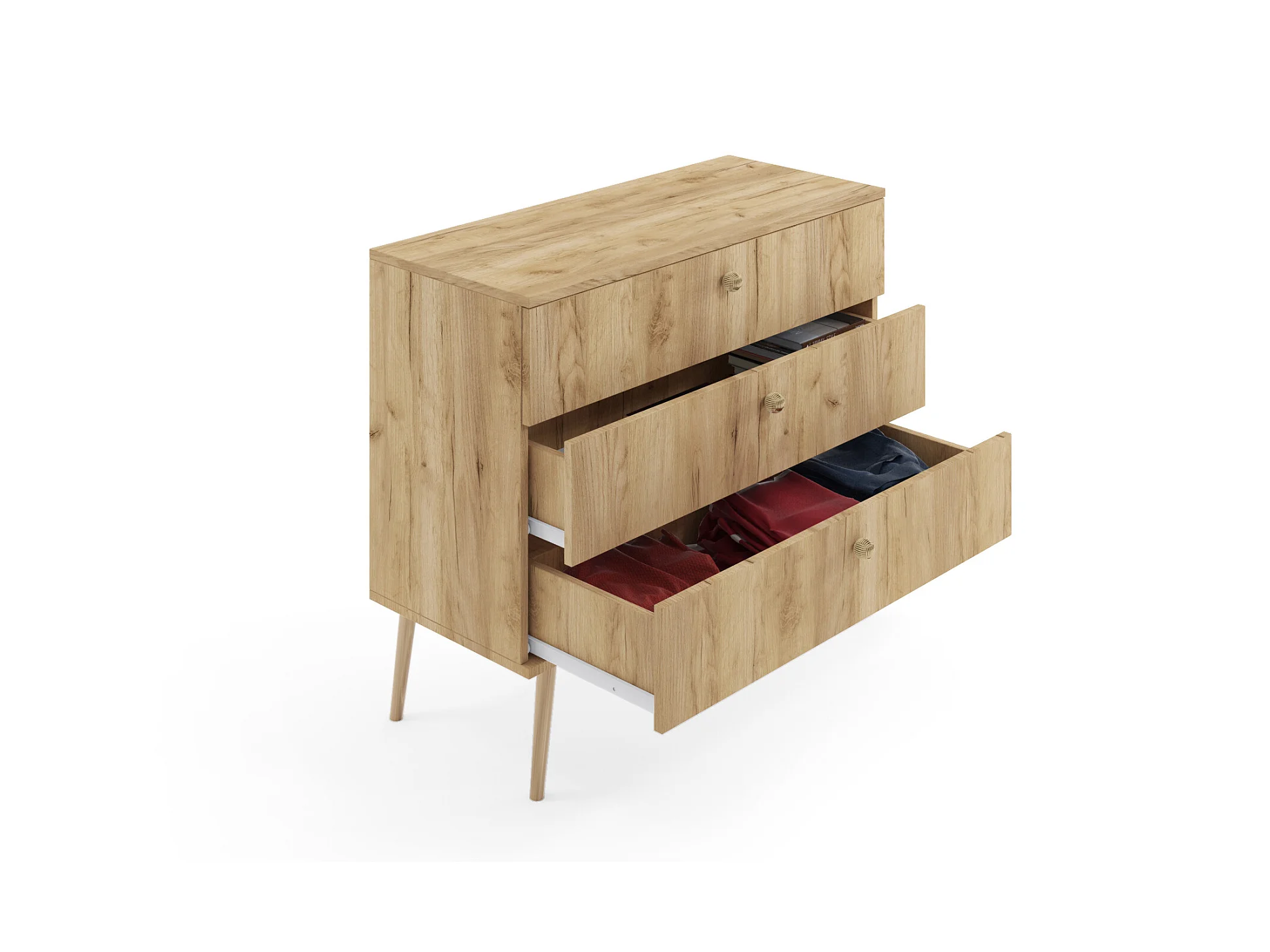Commode MALIBO 100 cm 3S avec tiroirs chêne craft doré
