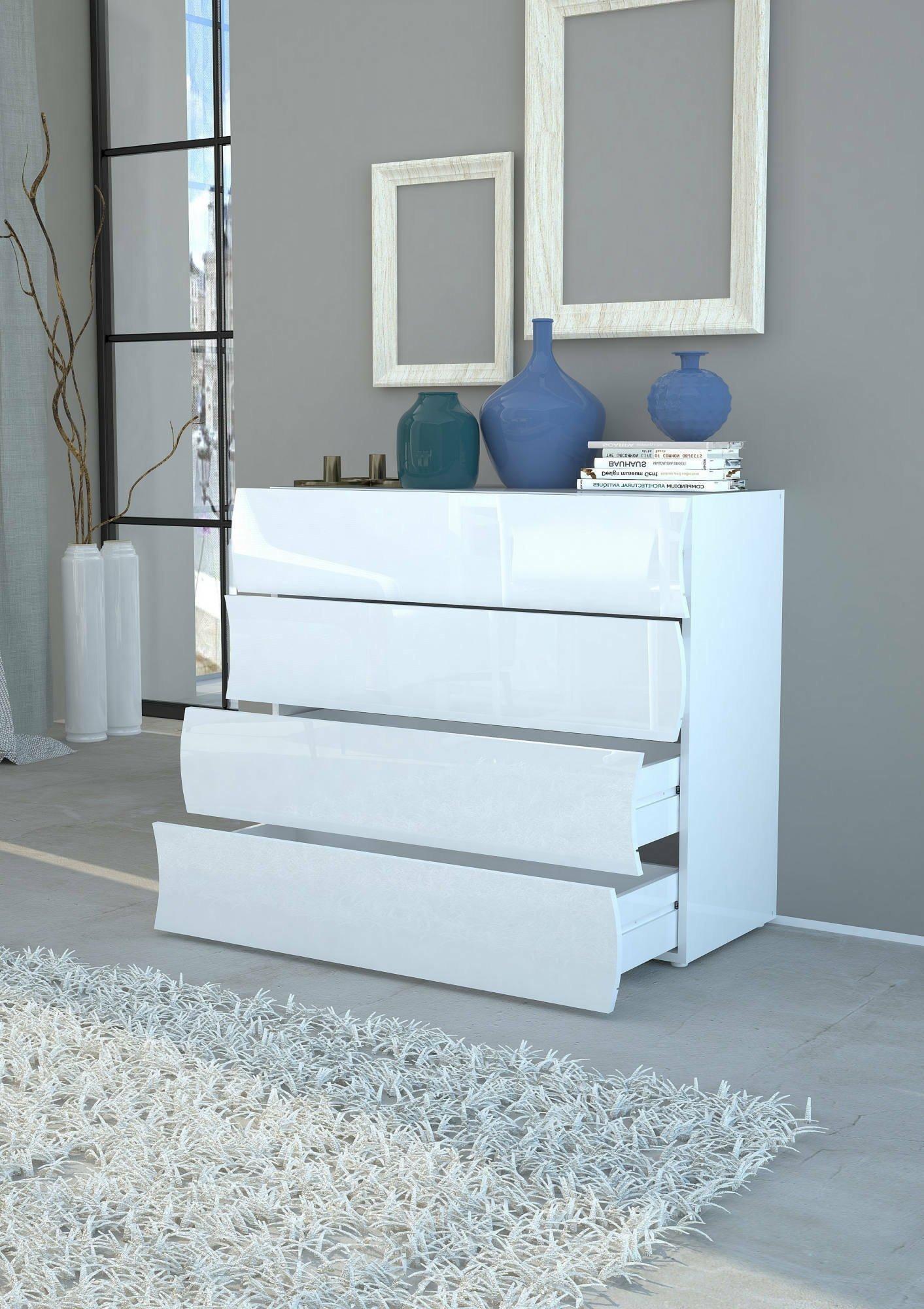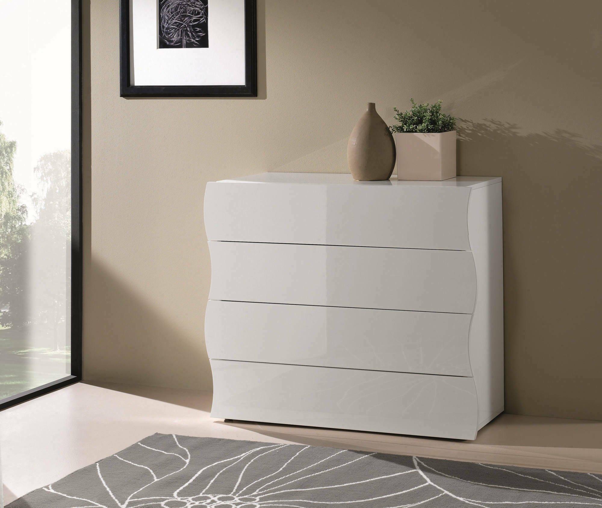 Commode Antonio, Commode 4 tiroirs, Commode de chambre, 100% Made in Italy, 98x40h82 cm, Blanc brillant