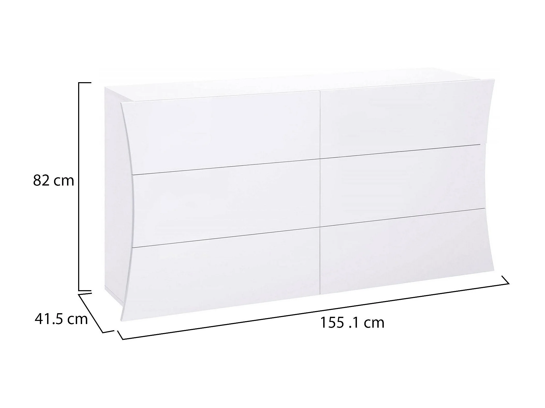 Commode Mauro, Commode 6 tiroirs, Commode de chambre, 100% Made in Italy, Blanc brillant, 155x40h82 cm