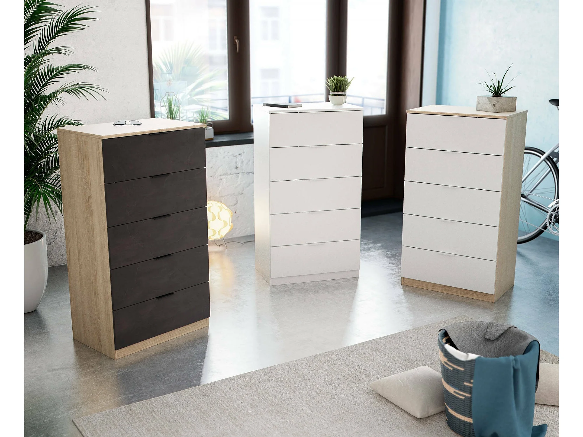 Commode Irving, commode 5 tiroirs, commode pour la chambre, commode moderne, 61x40h118 cm, blanc