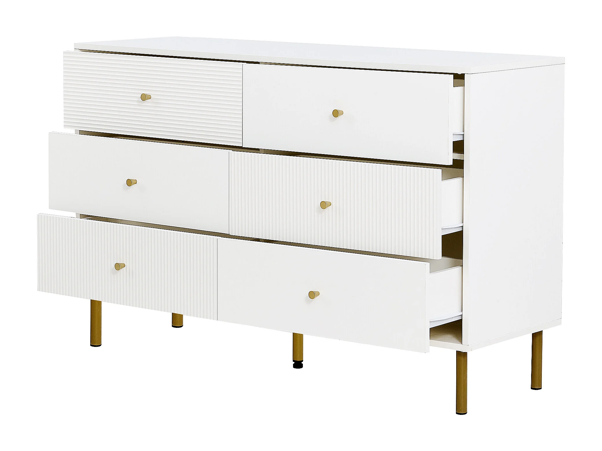 Commode moderne à 6 tiroirs 120×40×78 cm, rangement, pieds en acier, idéal pour la chambre, en MDF blanc