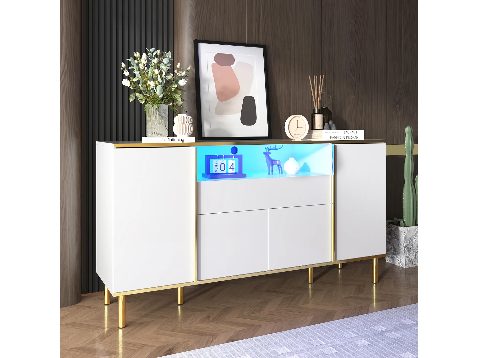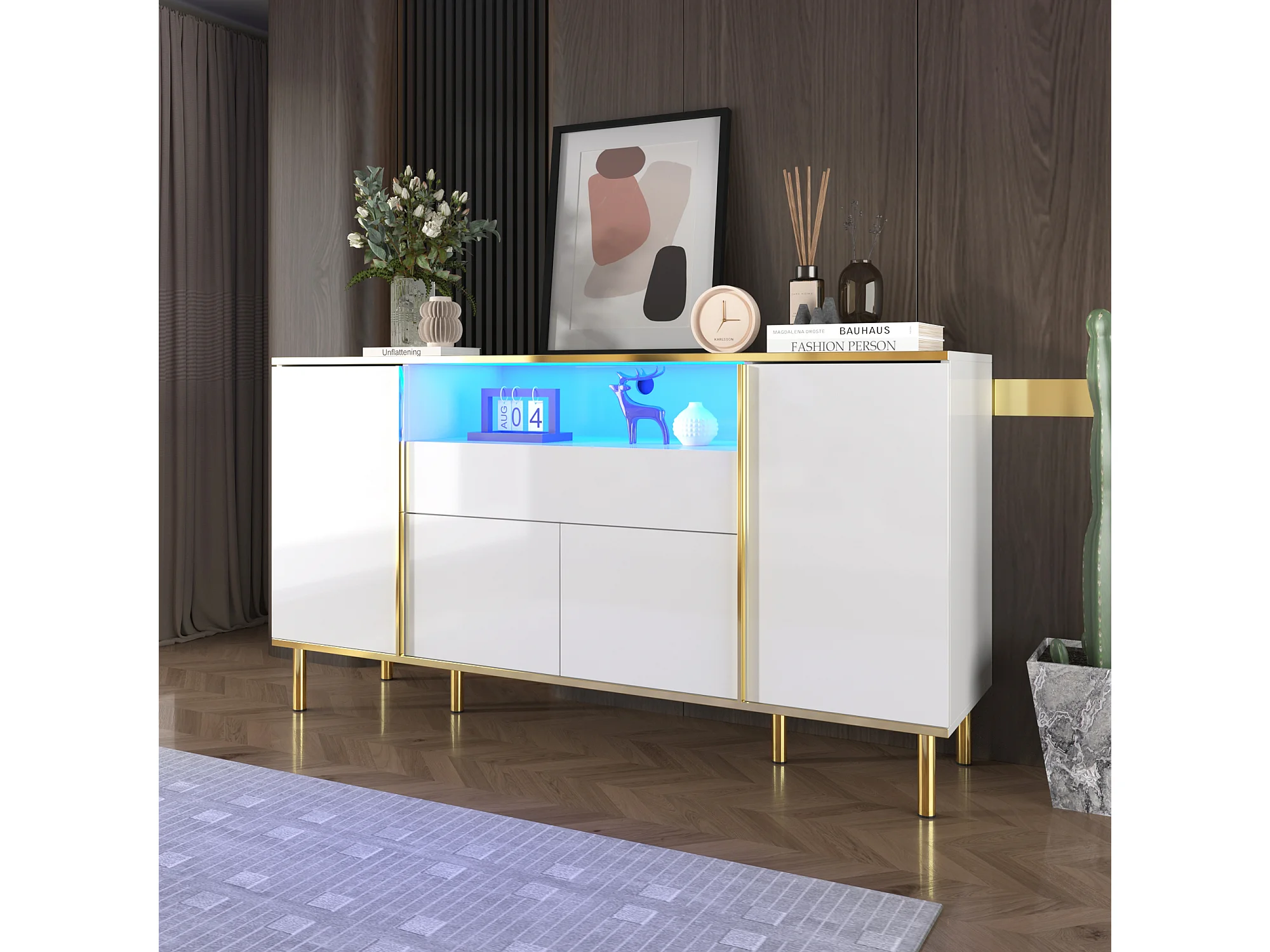 Commode moderne avec 1 tiroir, finition blanche brillante, MDF, blanc, 150x40x80 cm