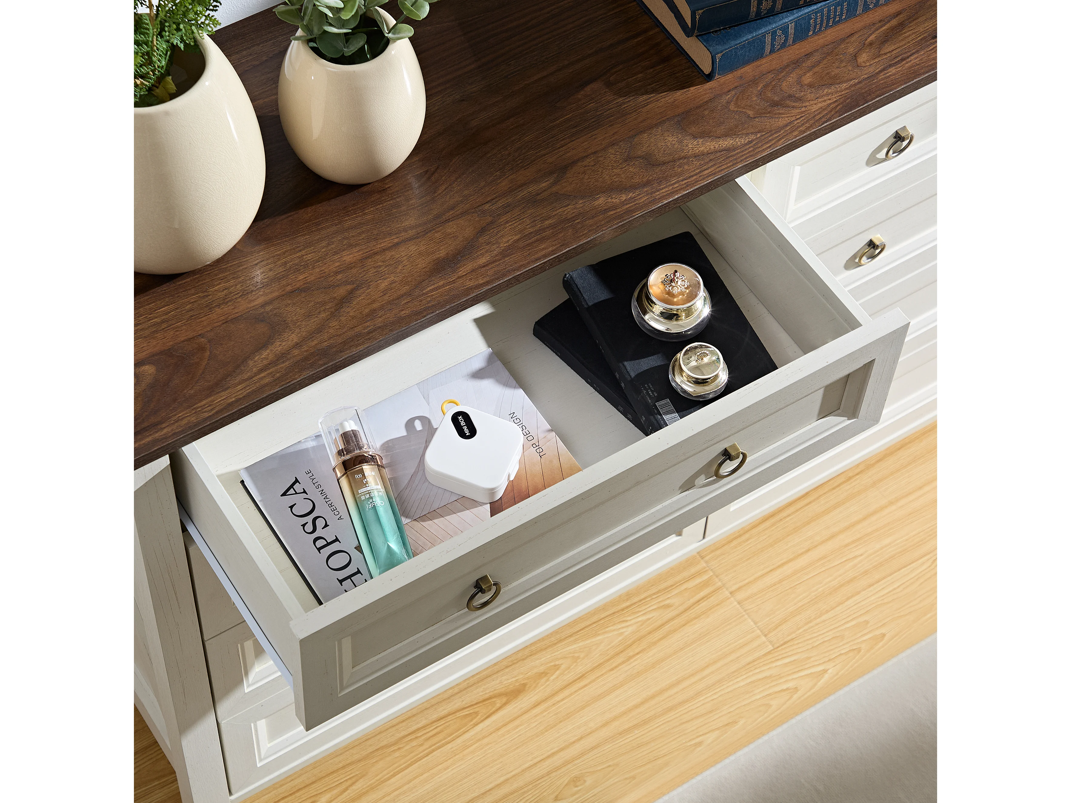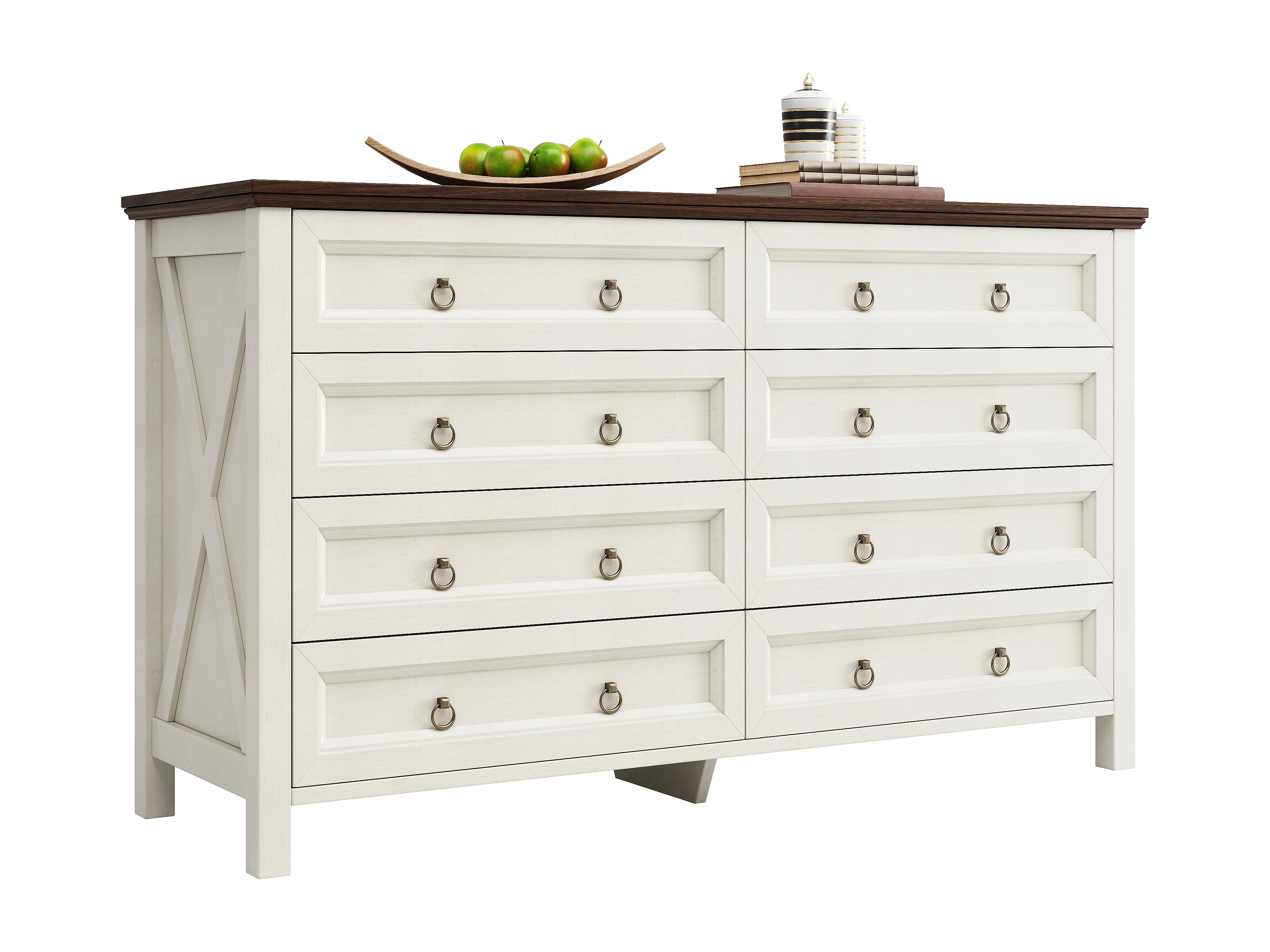 Commode moderne avec 8 tiroirs, buffet - 137 x 40 x 79.5 cm - pour chambre, salon - MDF - Couleur noyer + beige