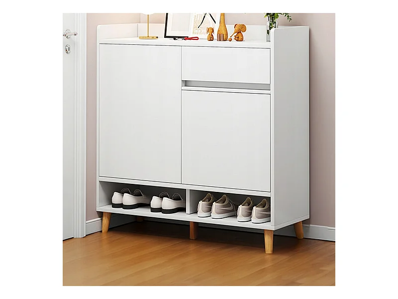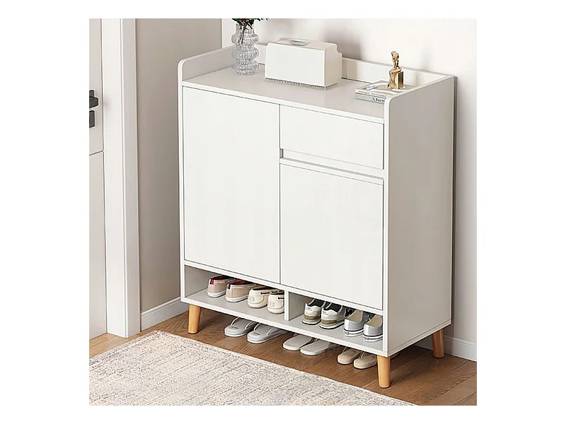 COMMODE MODERNE BLANCHE SPACIEUSE POUR CHAUSSURES ÉTAGÈRE 2 PORTES ÉTROITE