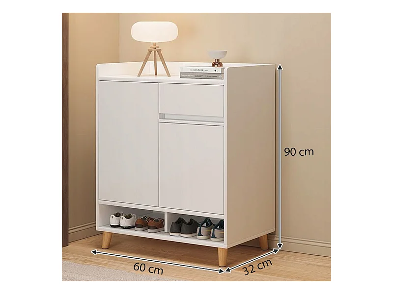 COMMODE MODERNE BLANCHE SPACIEUSE ESPACE POUR CHAUSSURES 60 CM AVEC TIROIR