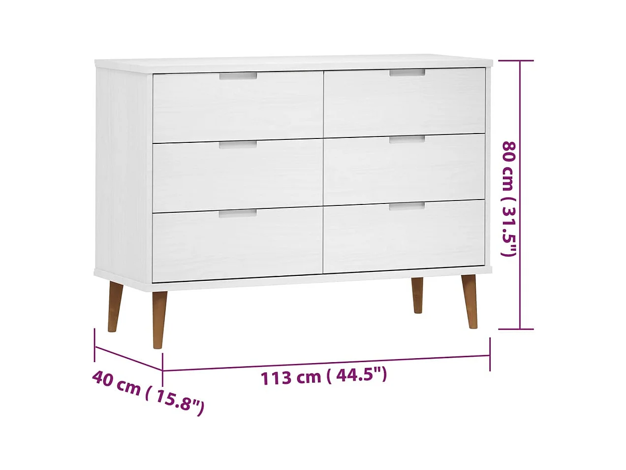 Commode MOLDE Blanc 113x40x80 cm Bois de pin massif