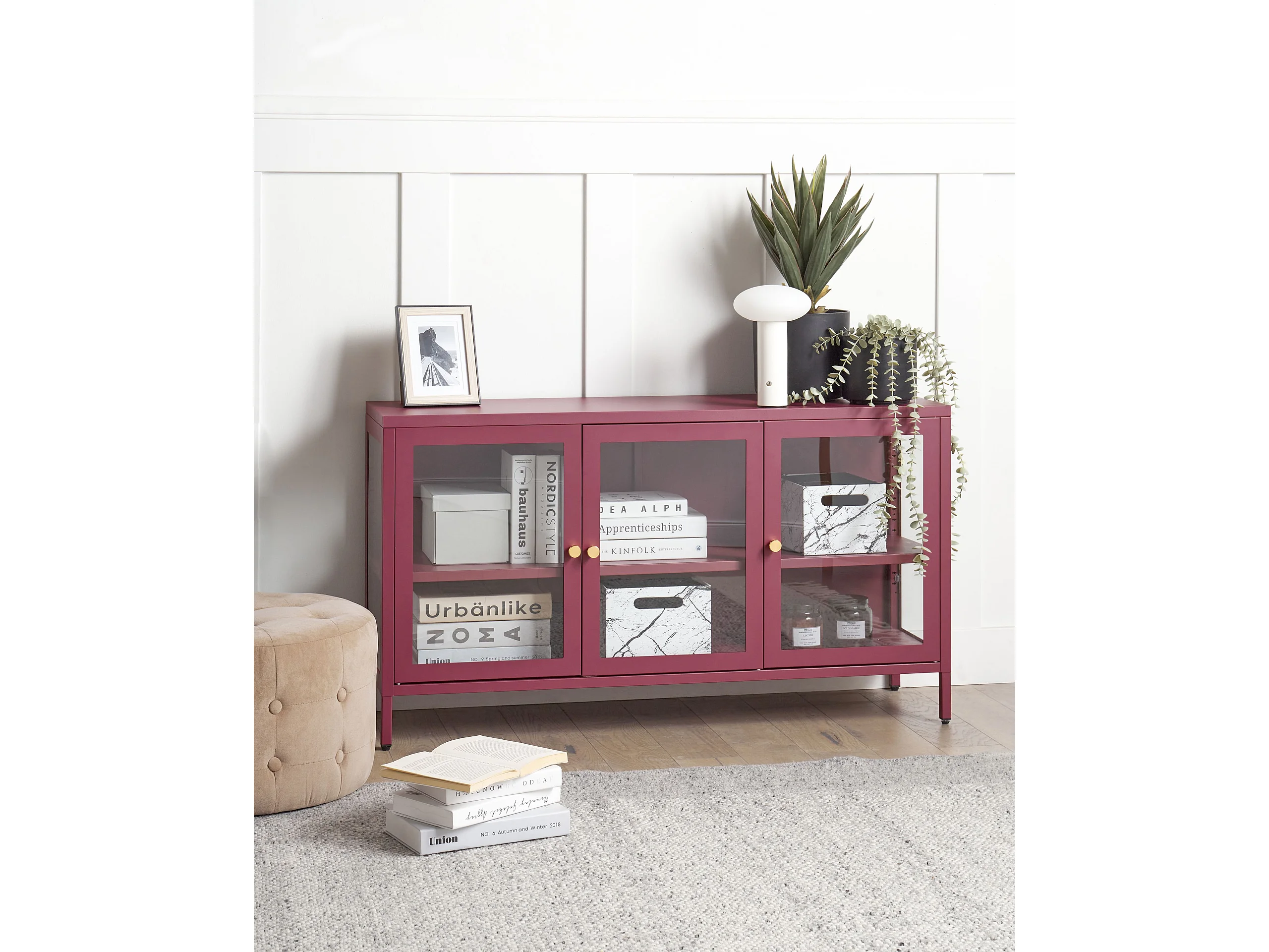 Buffet avec vitrine en verre NEWPORT Métal 115 cm Rouge foncé