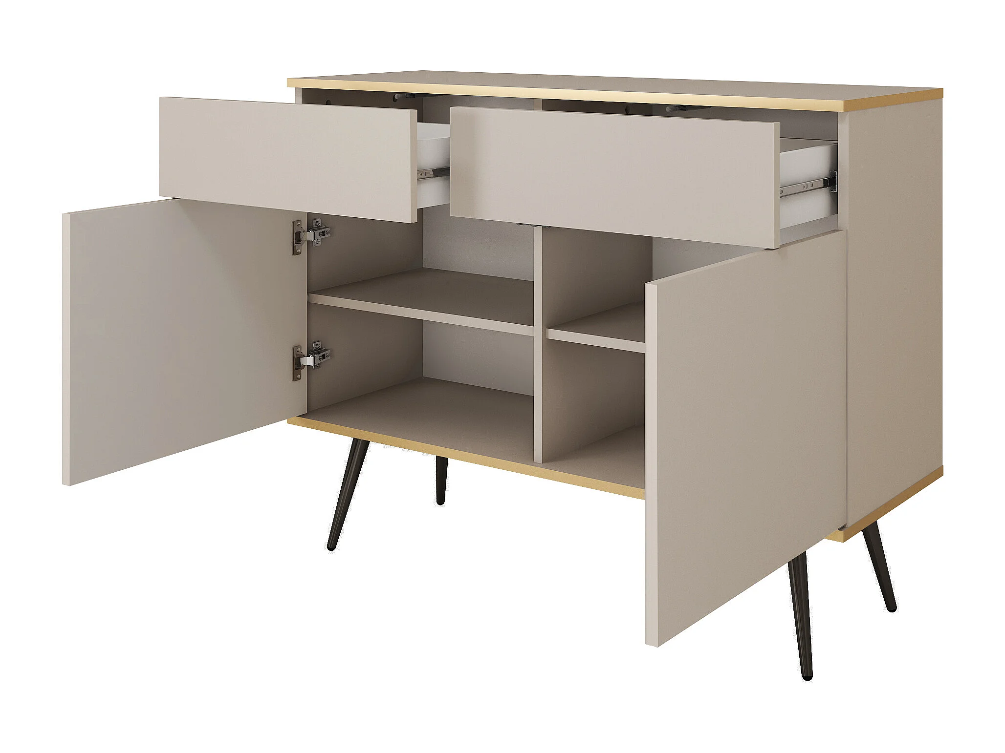 Commode : Noir, pieds dorés, 107 x 39 x 85 cm