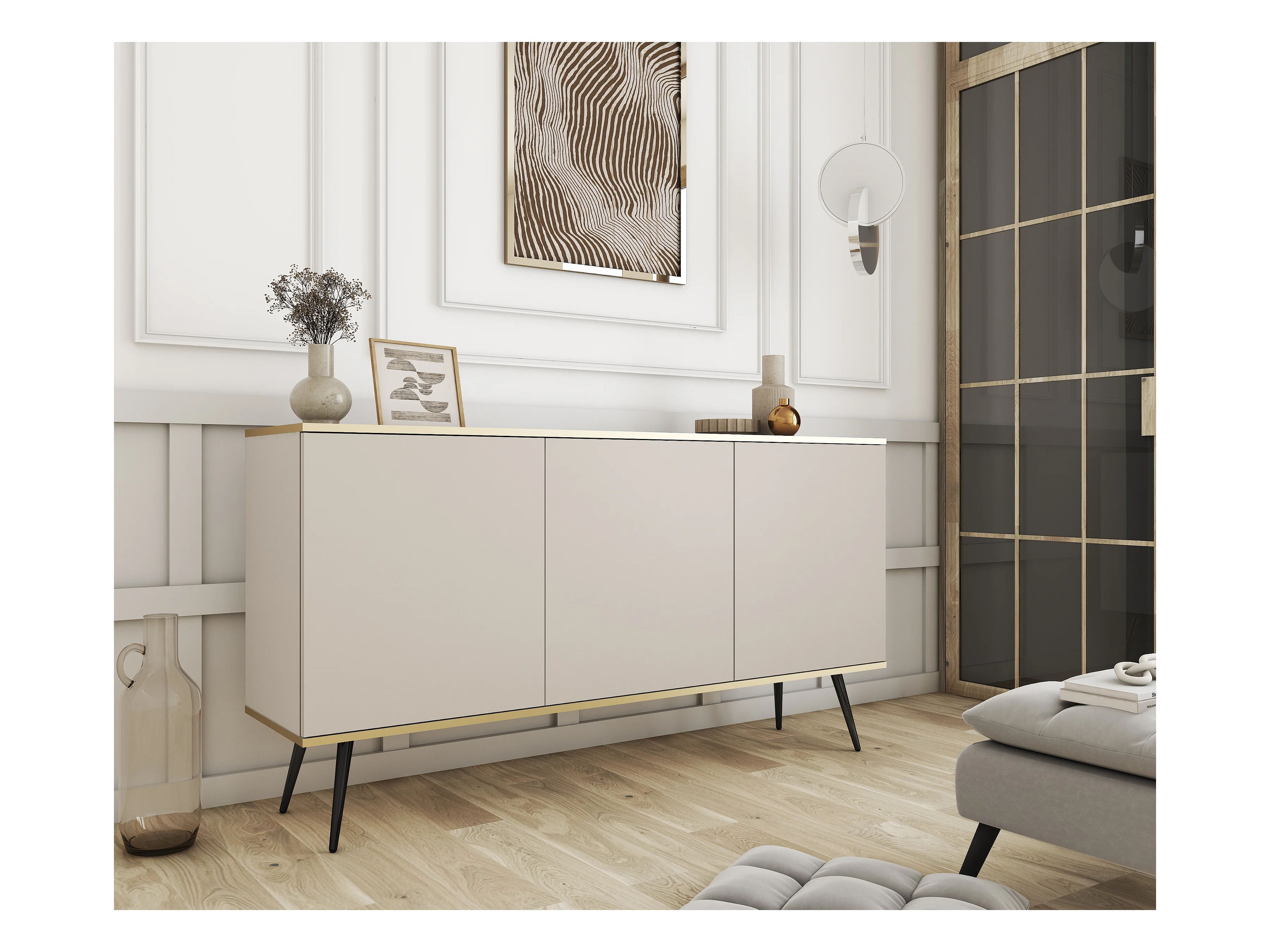 Commode ORO K-160 Moderne 160 cm Large Beige, 2 Portes, 2 Tiroirs, Push-to-Open, Pieds Métal Or 23 cm, Panneau Stratifié 16 mm