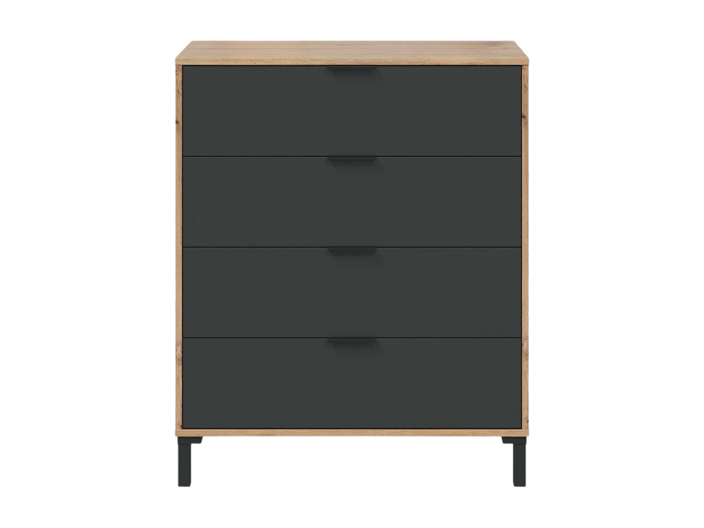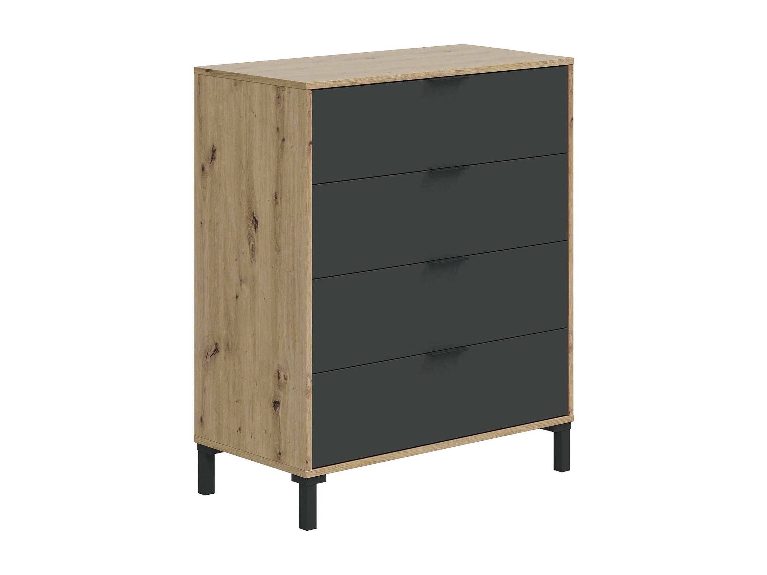 Commode Rochester, Commode à 4 tiroirs, Commode pour la chambre, Commode moderne, 76x40h94 cm, Chêne noué et Anthracite