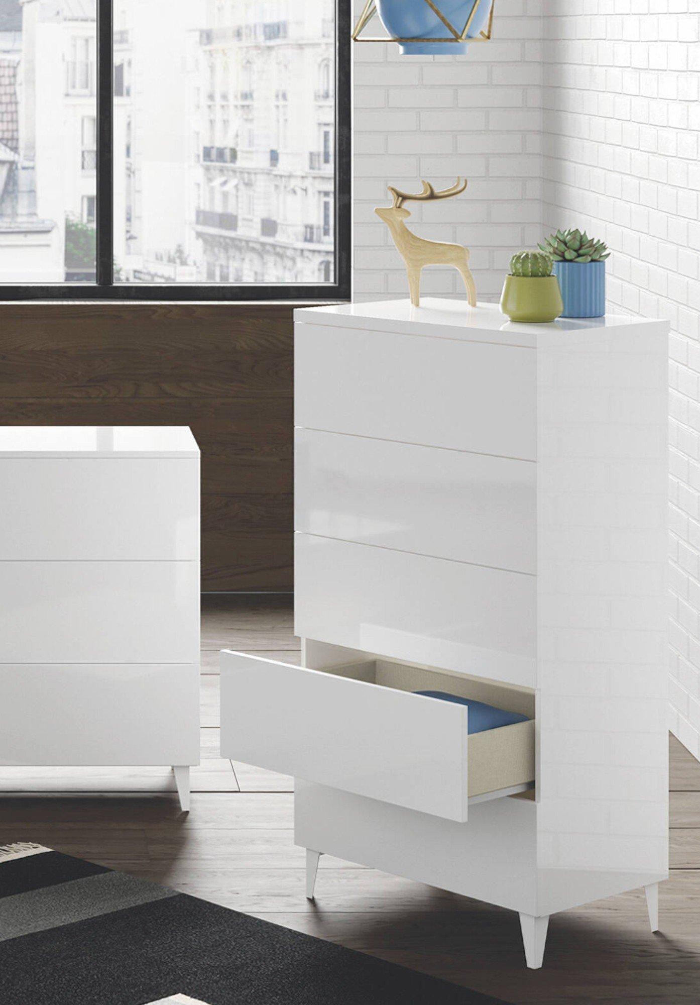 Commode Mesquite, Commode 5 tiroirs, Commode pour chambre à coucher, Commode moderne, 60x40h110 cm, Blanc