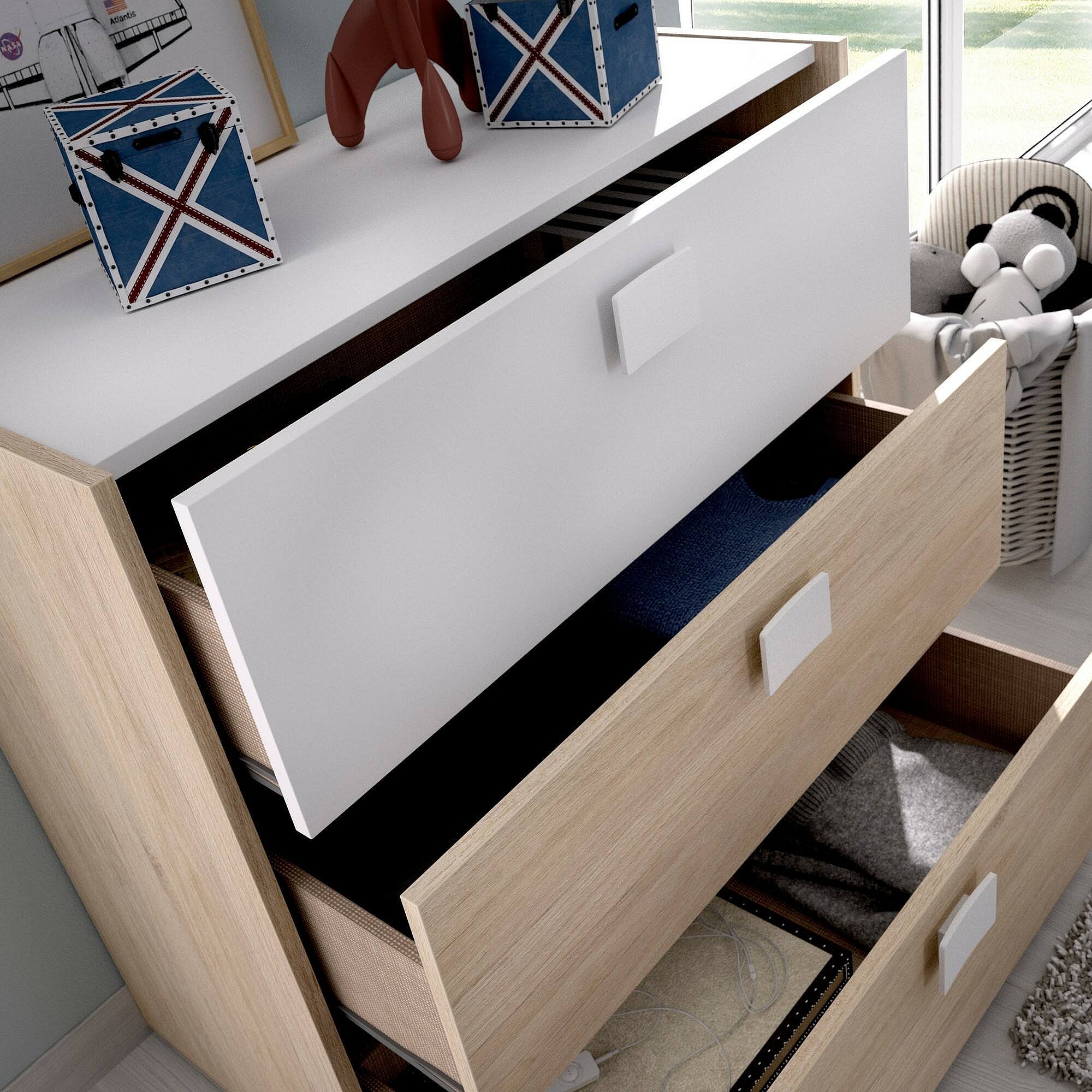 COMMODE - Commode pour chambre à coucher, Commode à 3 tiroirs, 80x43h81 cm, Chêne et Blanc.