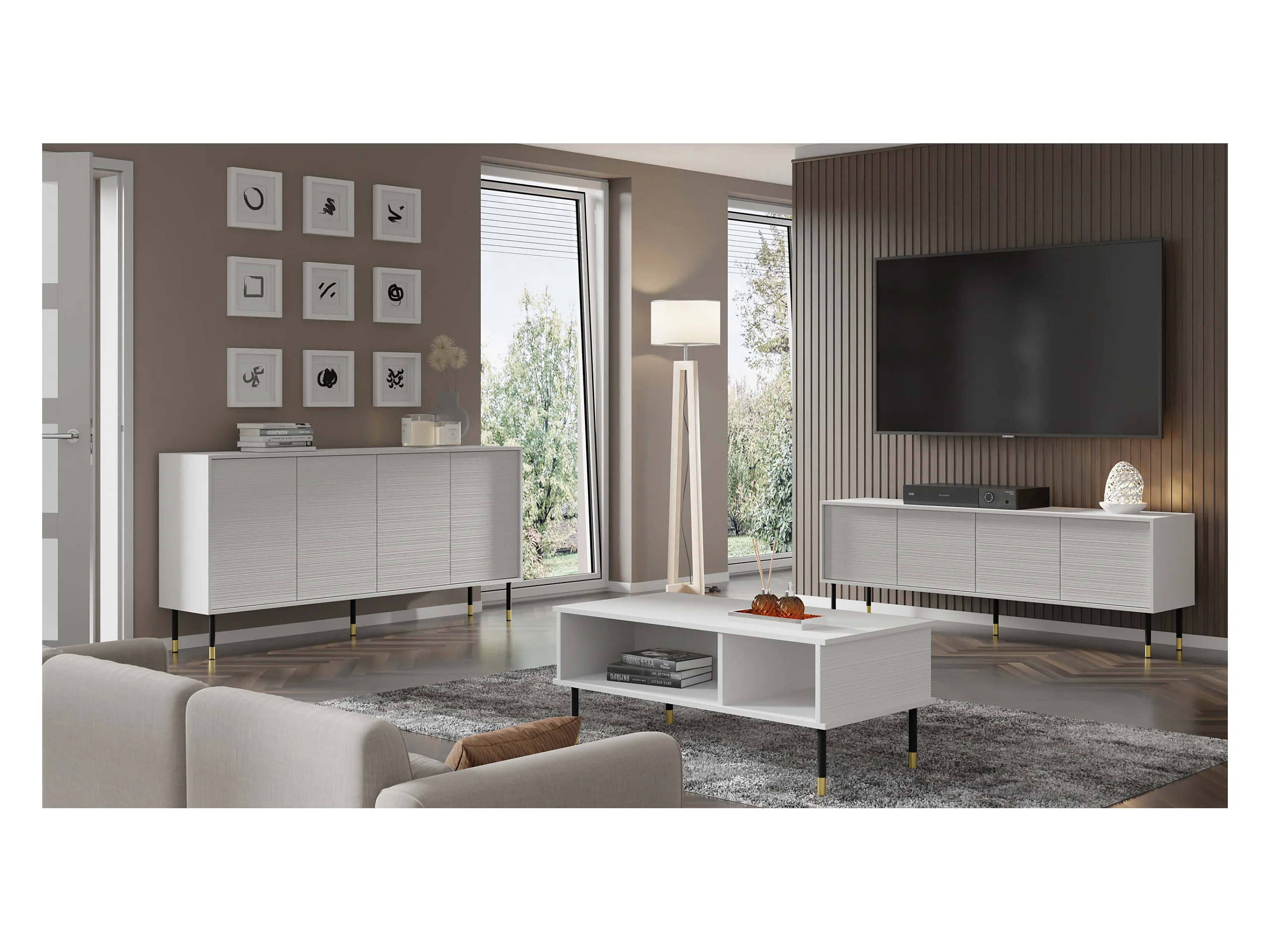 Commode SHERWOOD Buffet 4D 180 cm fraisée sur pieds blanc mat
