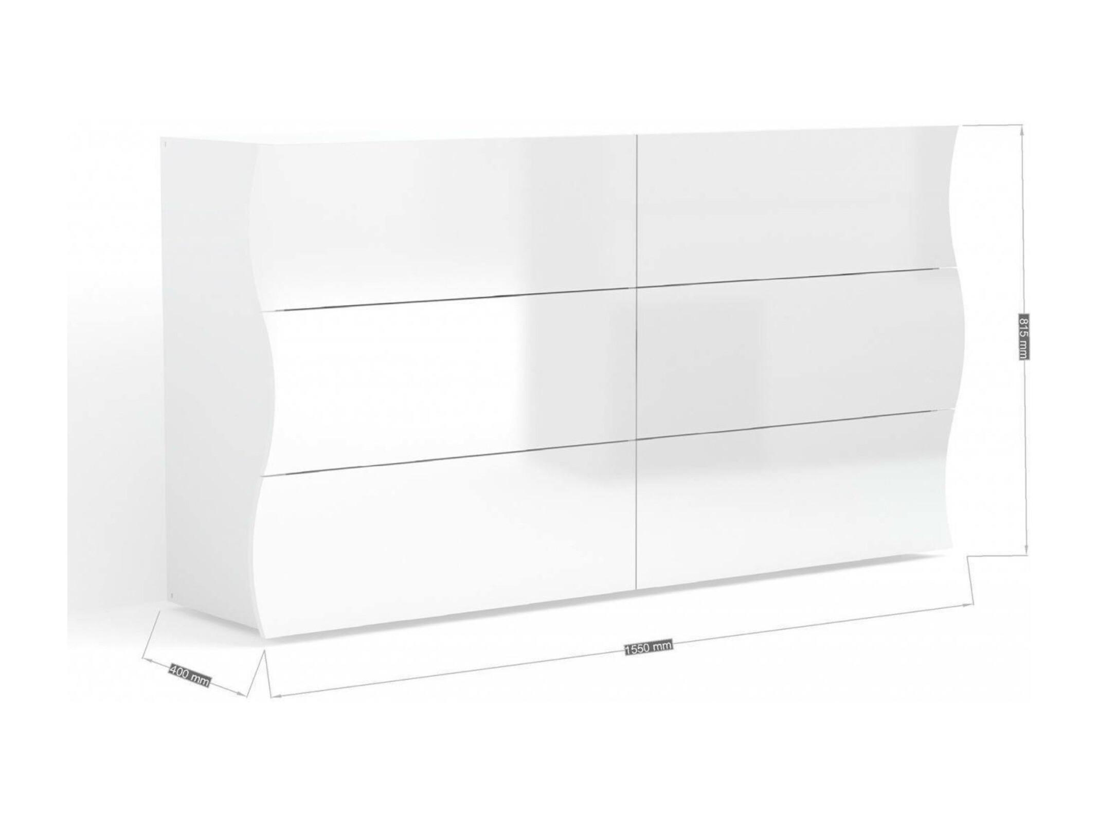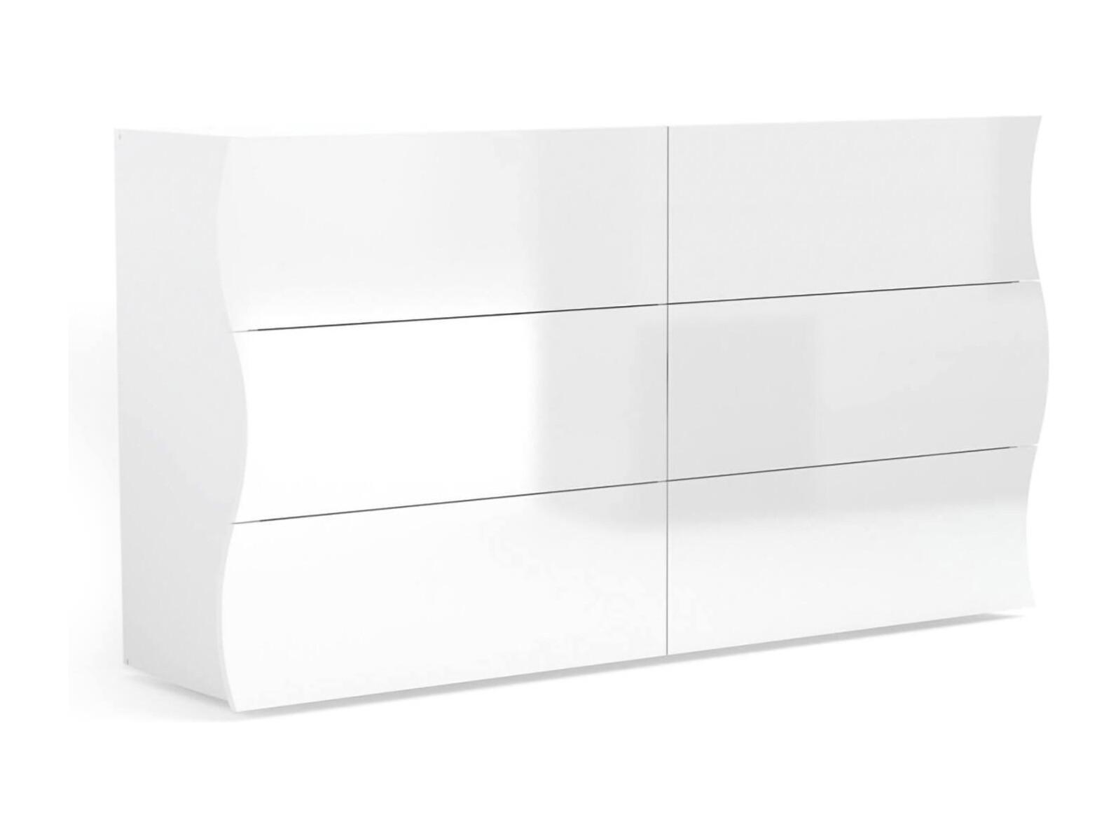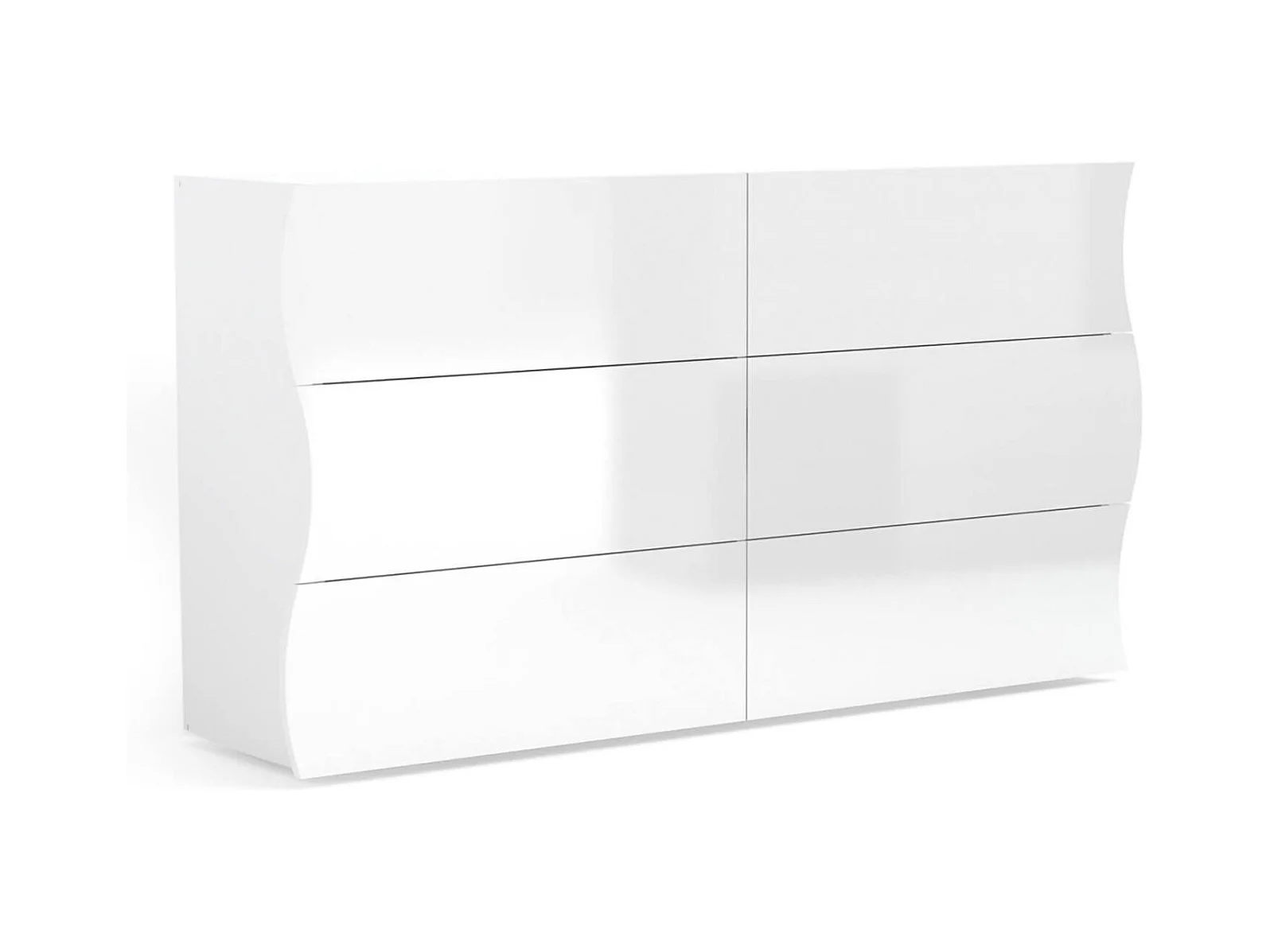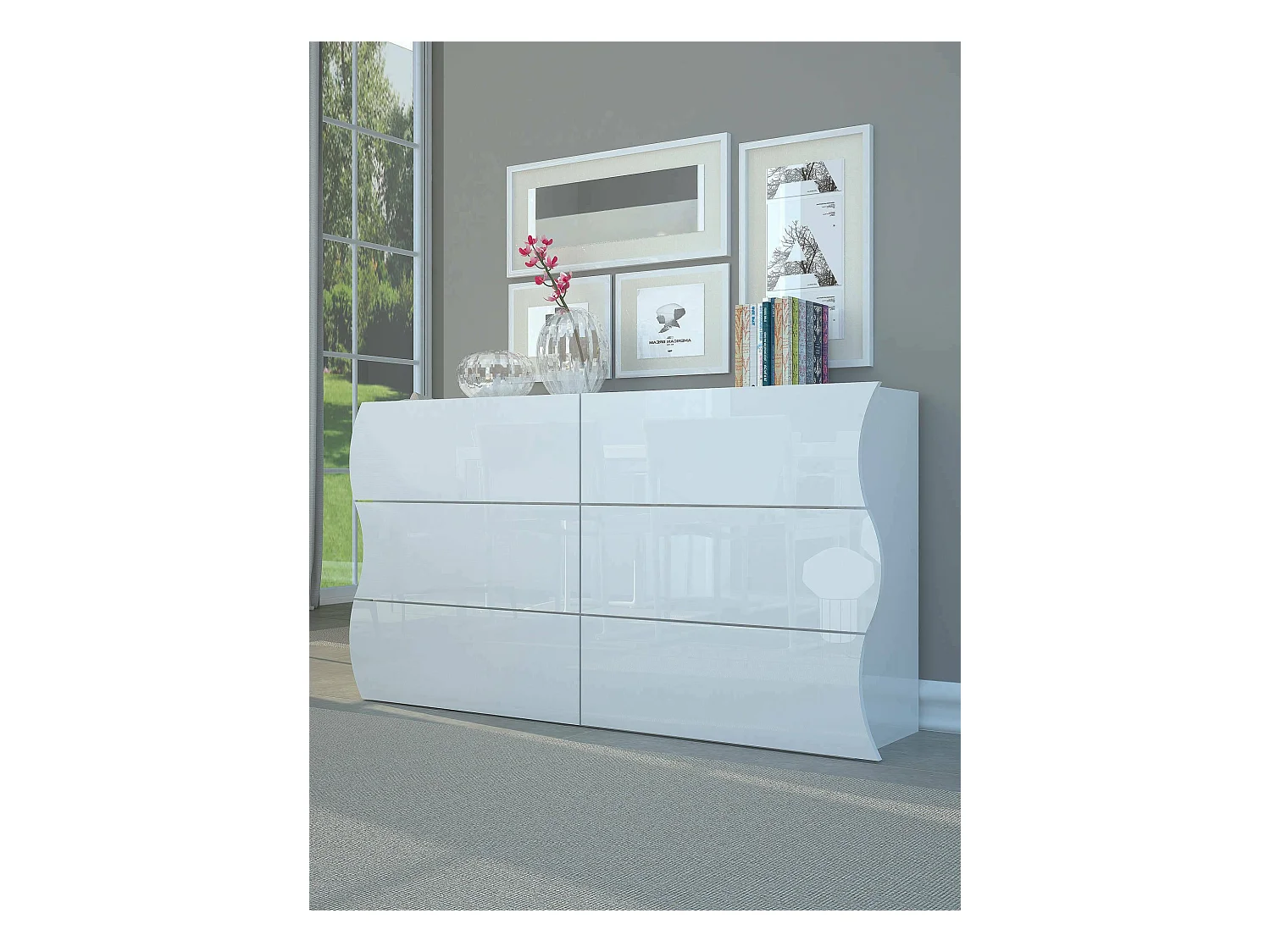 Commode Tyler, Commode 6 tiroirs, Commode de chambre, 100% Made in Italy, Blanc brillant, 155x40h82 cm