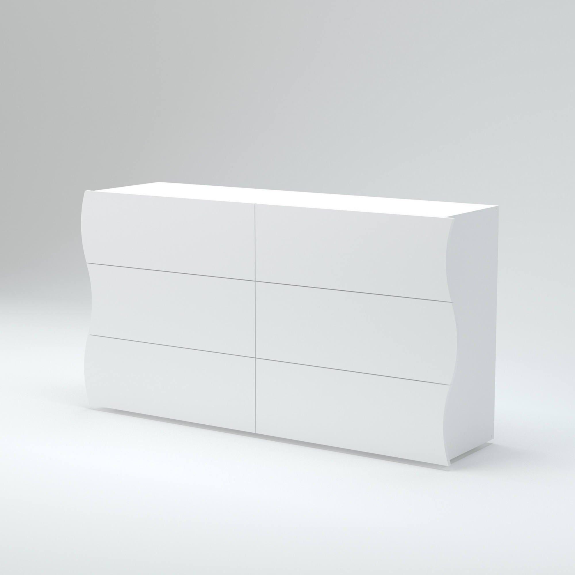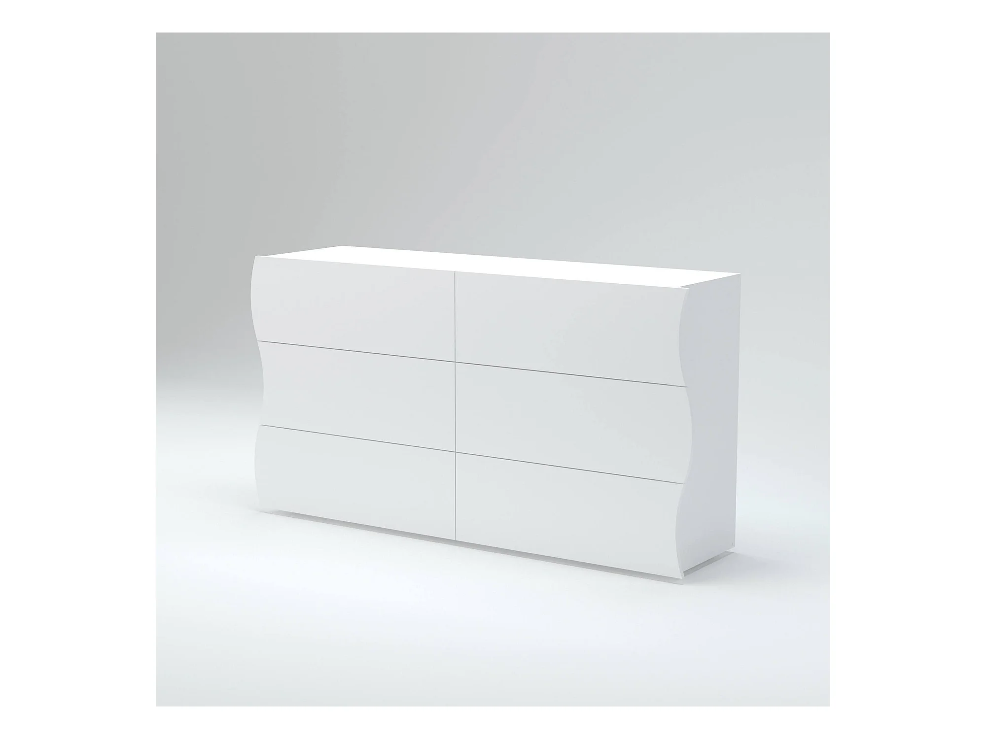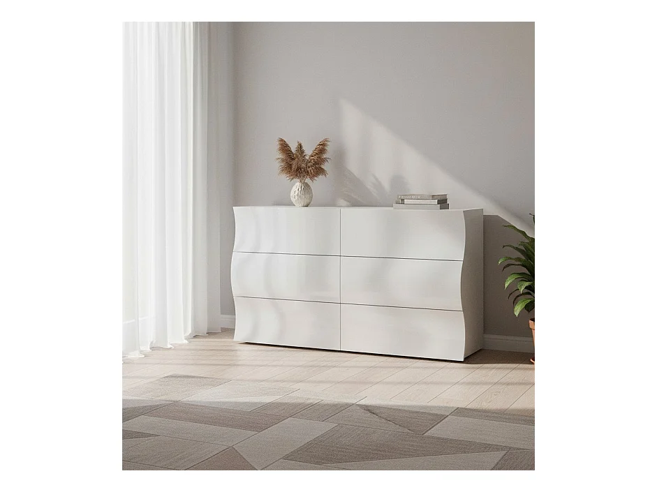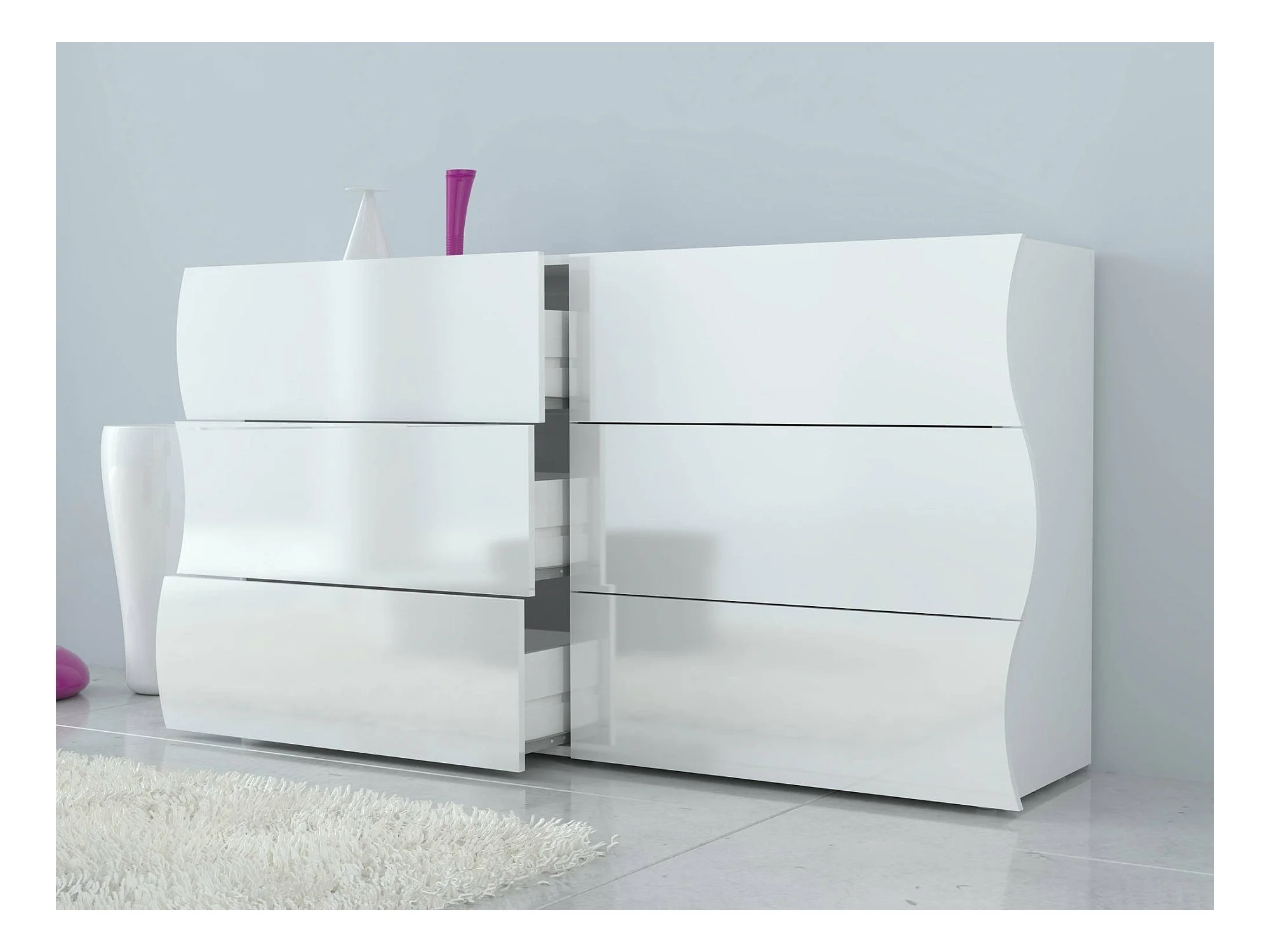 Commode Tyler, Commode 6 tiroirs, Commode de chambre, 100% Made in Italy, Blanc brillant, 155x40h82 cm